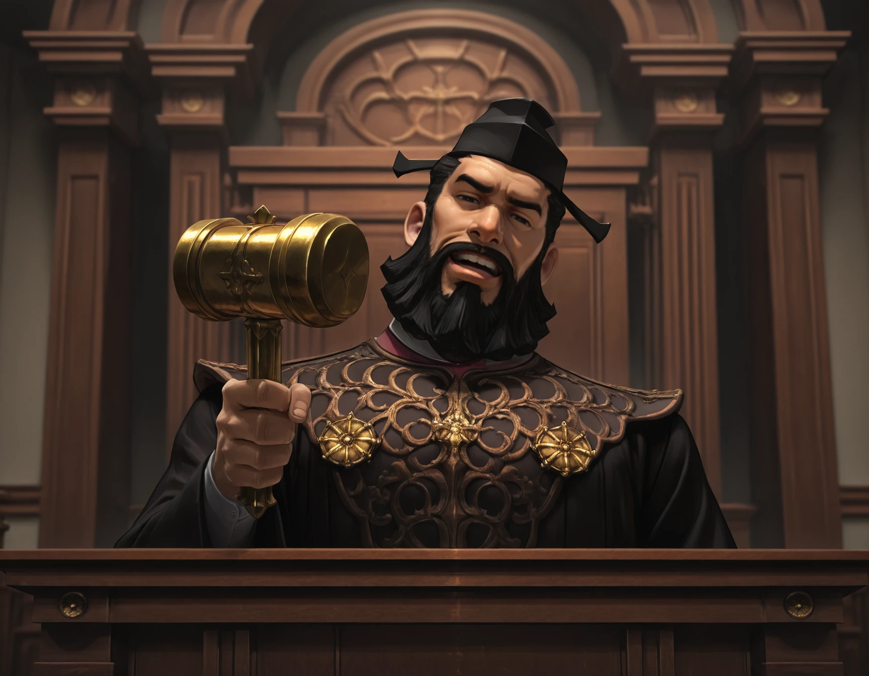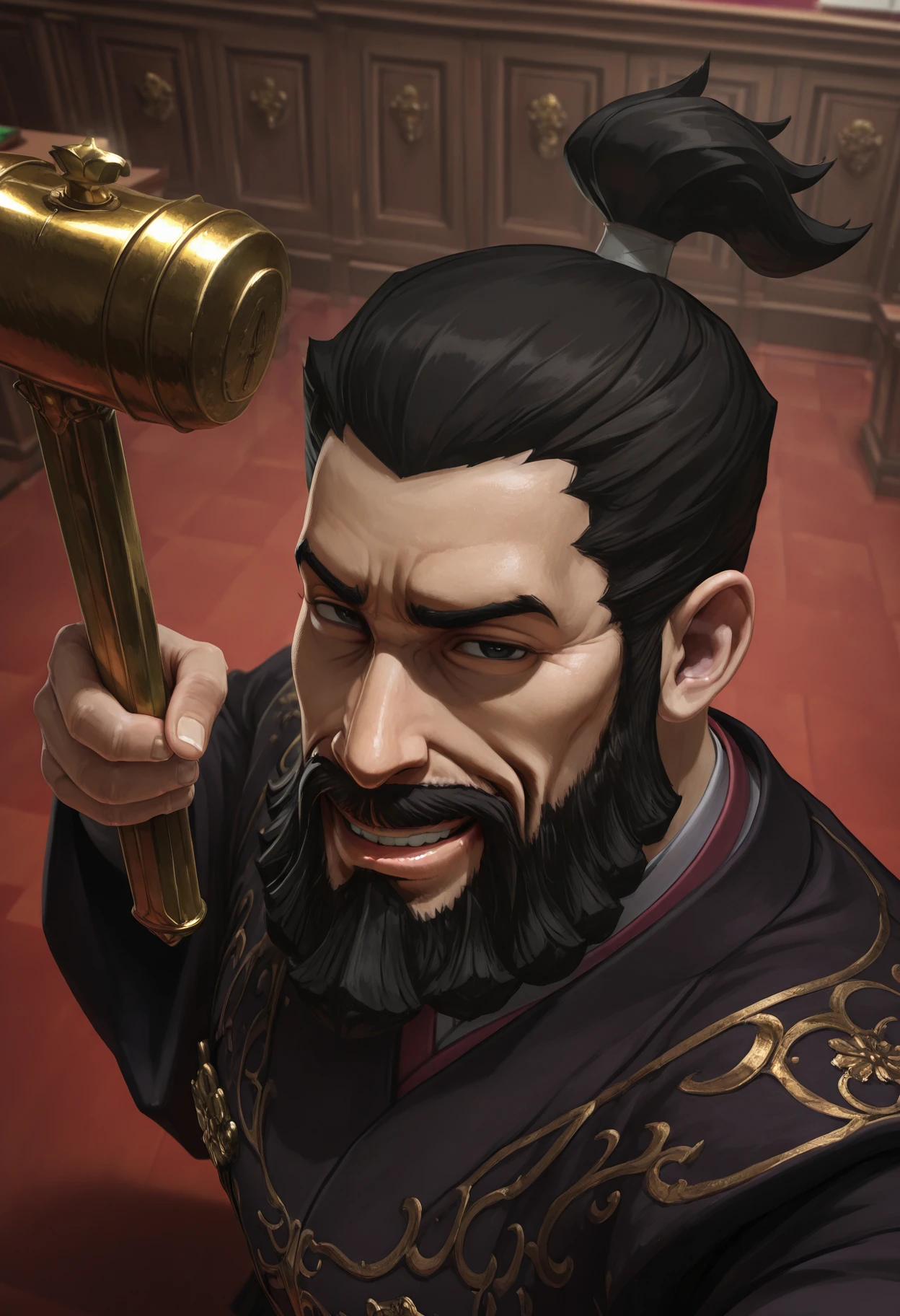 seishiroujigoku, beard, 1boy, black hair, solo, bara, muscular