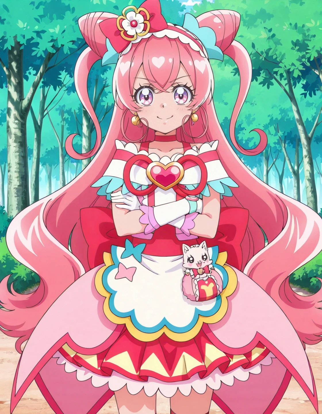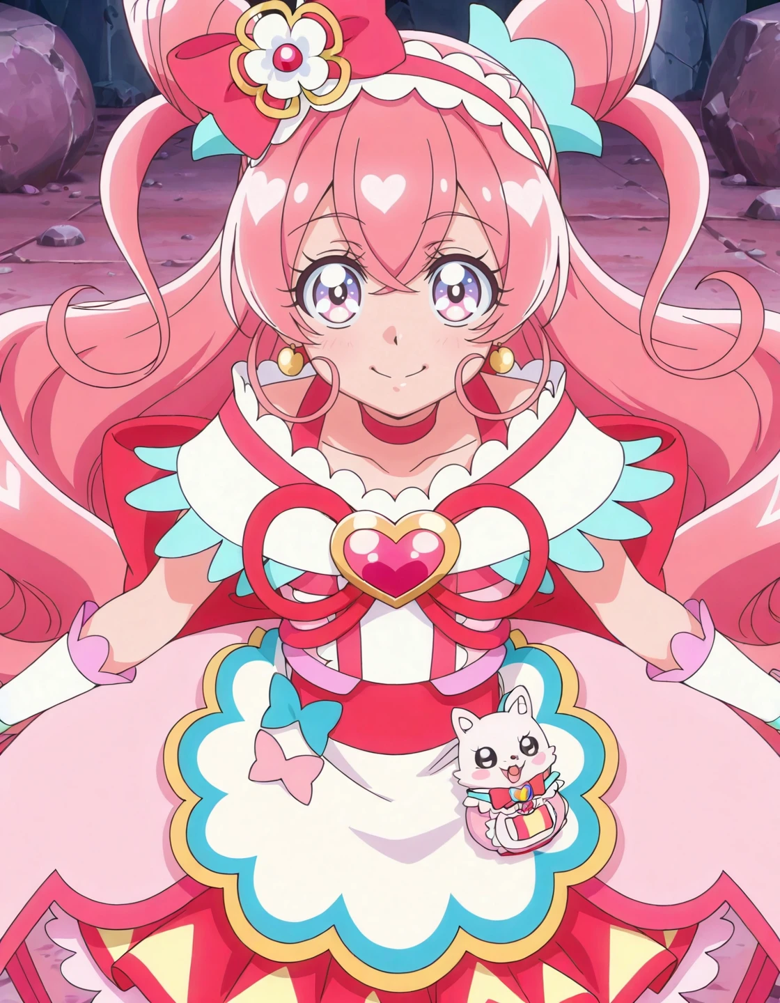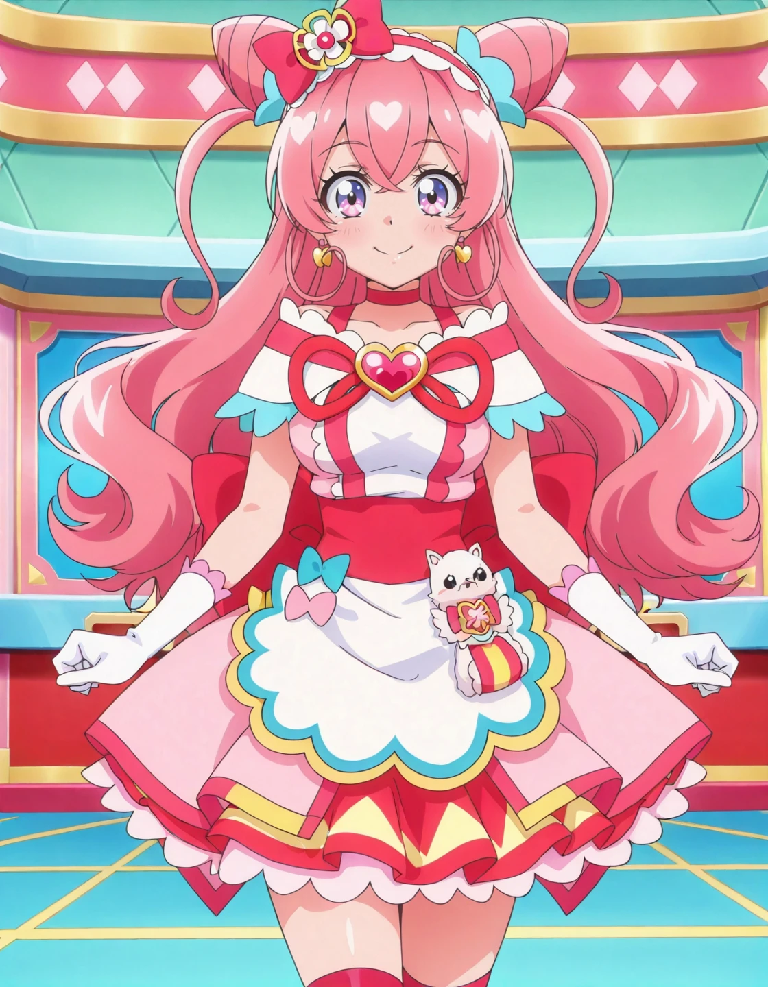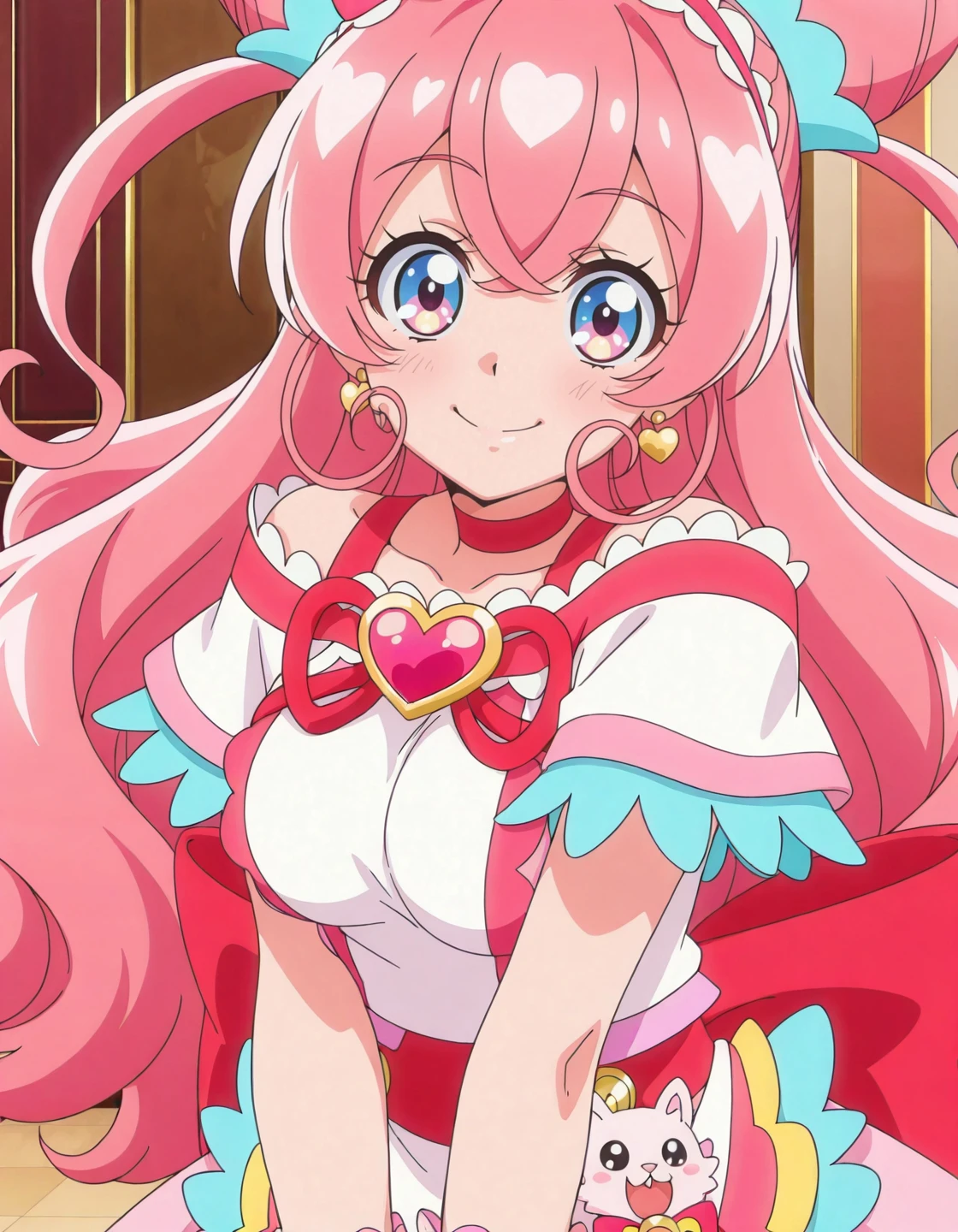 anime screencap,solo,1girl,cureprecious,preciouscostume,ribbon tie, hair ornament,dress,magical girl,<lora:cureprecious_IL:0.8>,high definition,amazing quality,best quality,very aesthetic,masterpiece,absurdres
