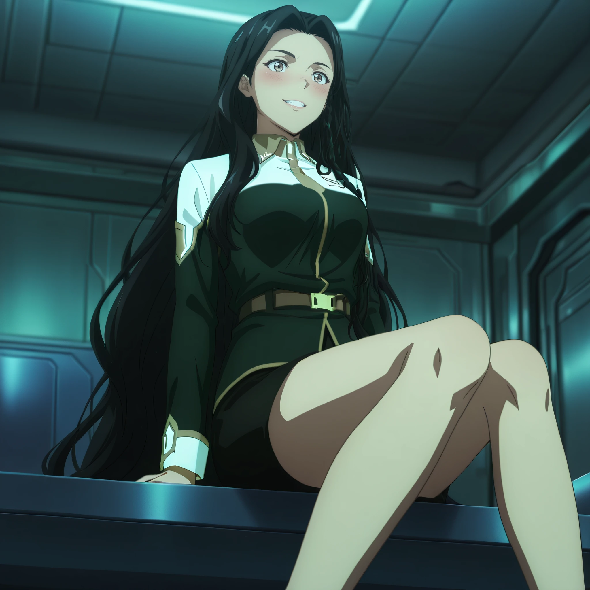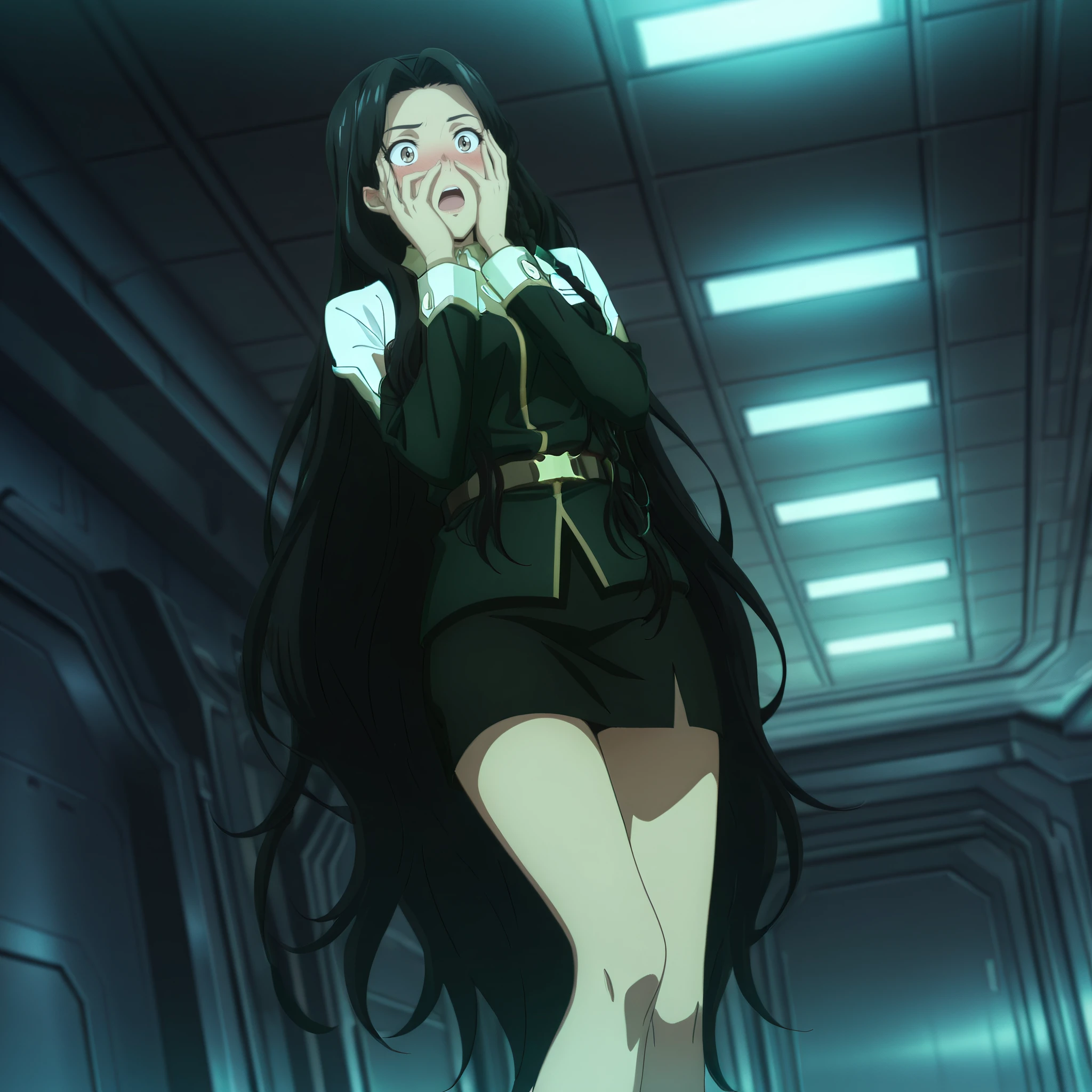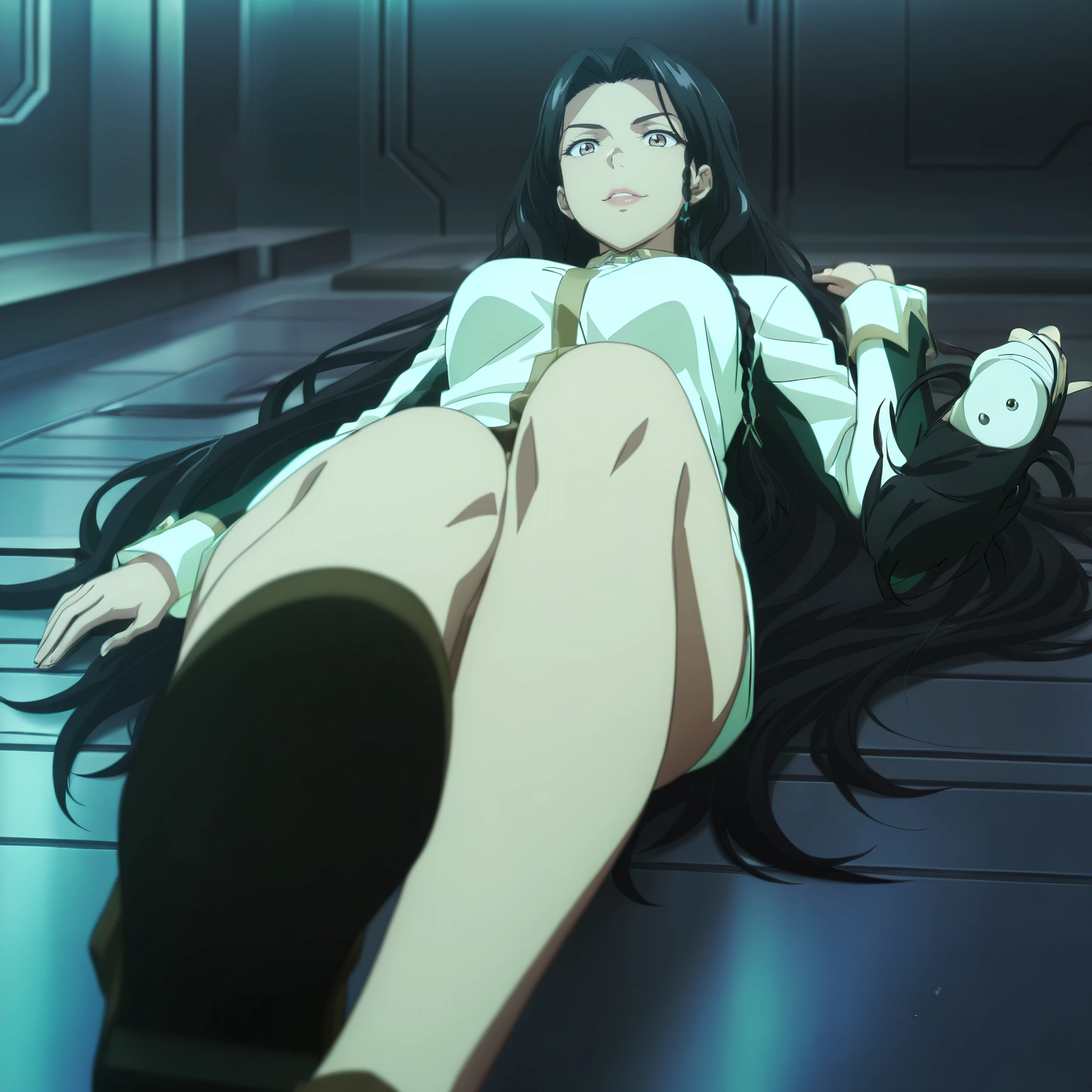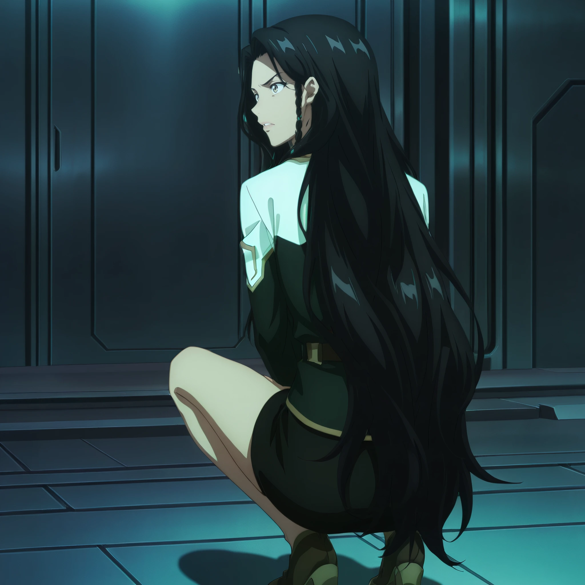 DRSelma, brown eyes, black hair, very long hair, side braid, single braid,