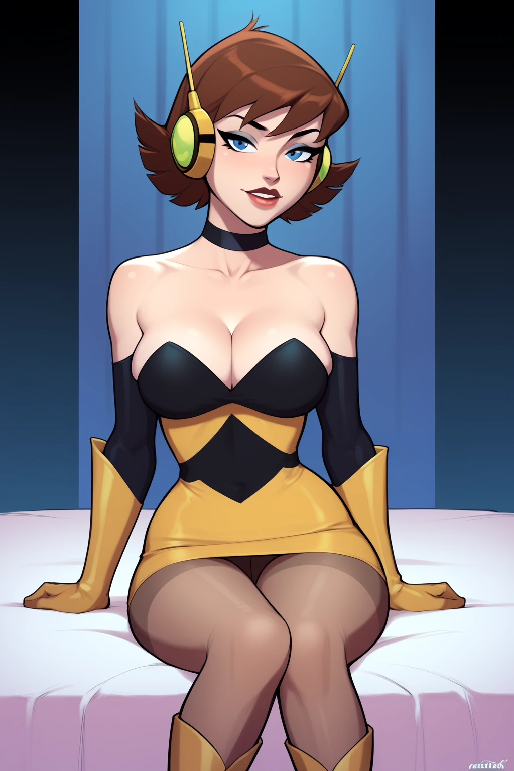 Hero Costume: headset, off-shoulder, strapless, dress*, elbow gloves, pantyhose, boots