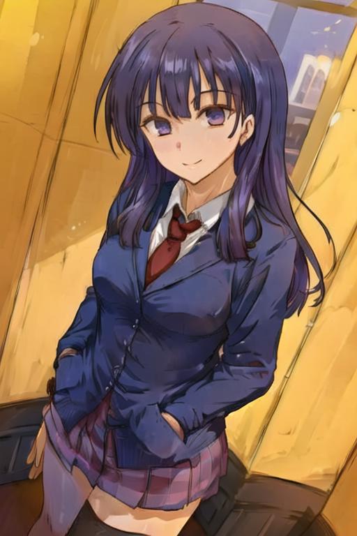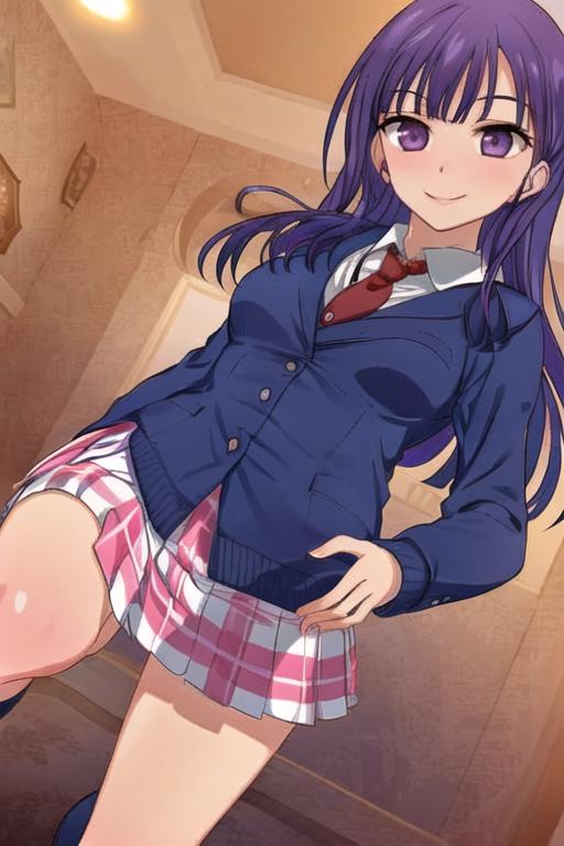 Recommended tags - purple hair, long hair, pink eyes, medium breasts,