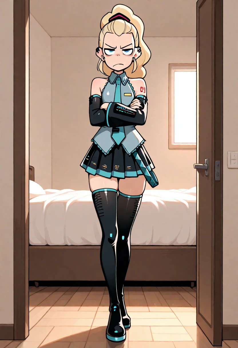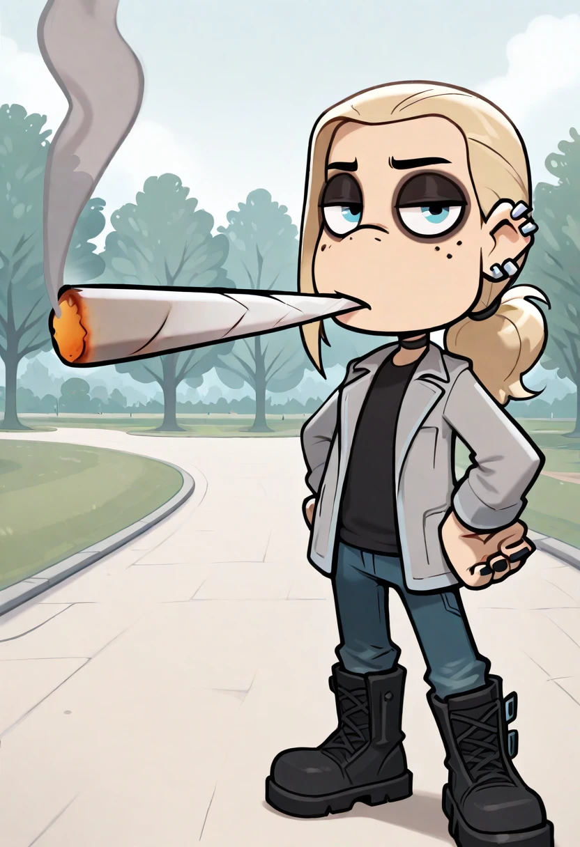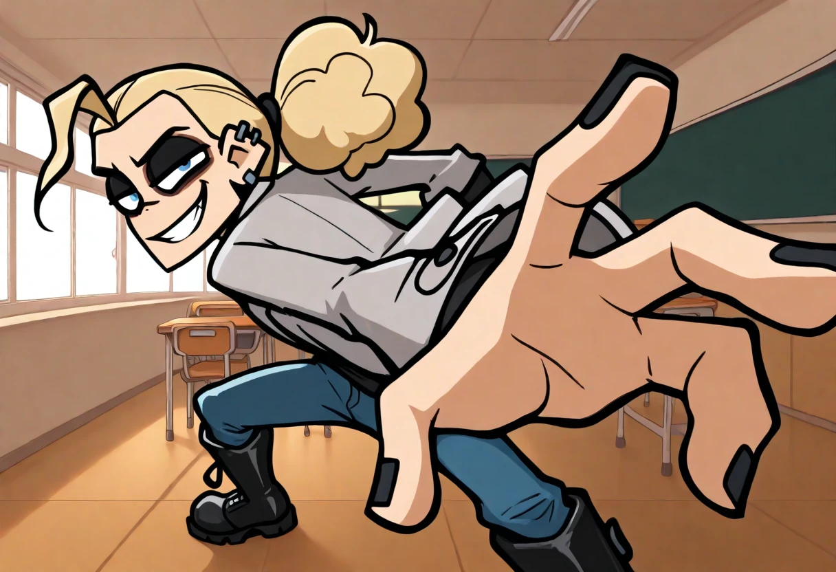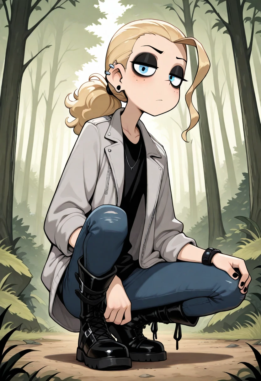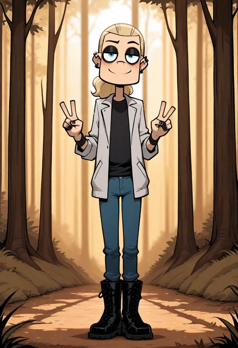 grey jacket, black shirt, blue pants, boots, black bootsMy discord server: https://discord.gg/AW8gbybkBn