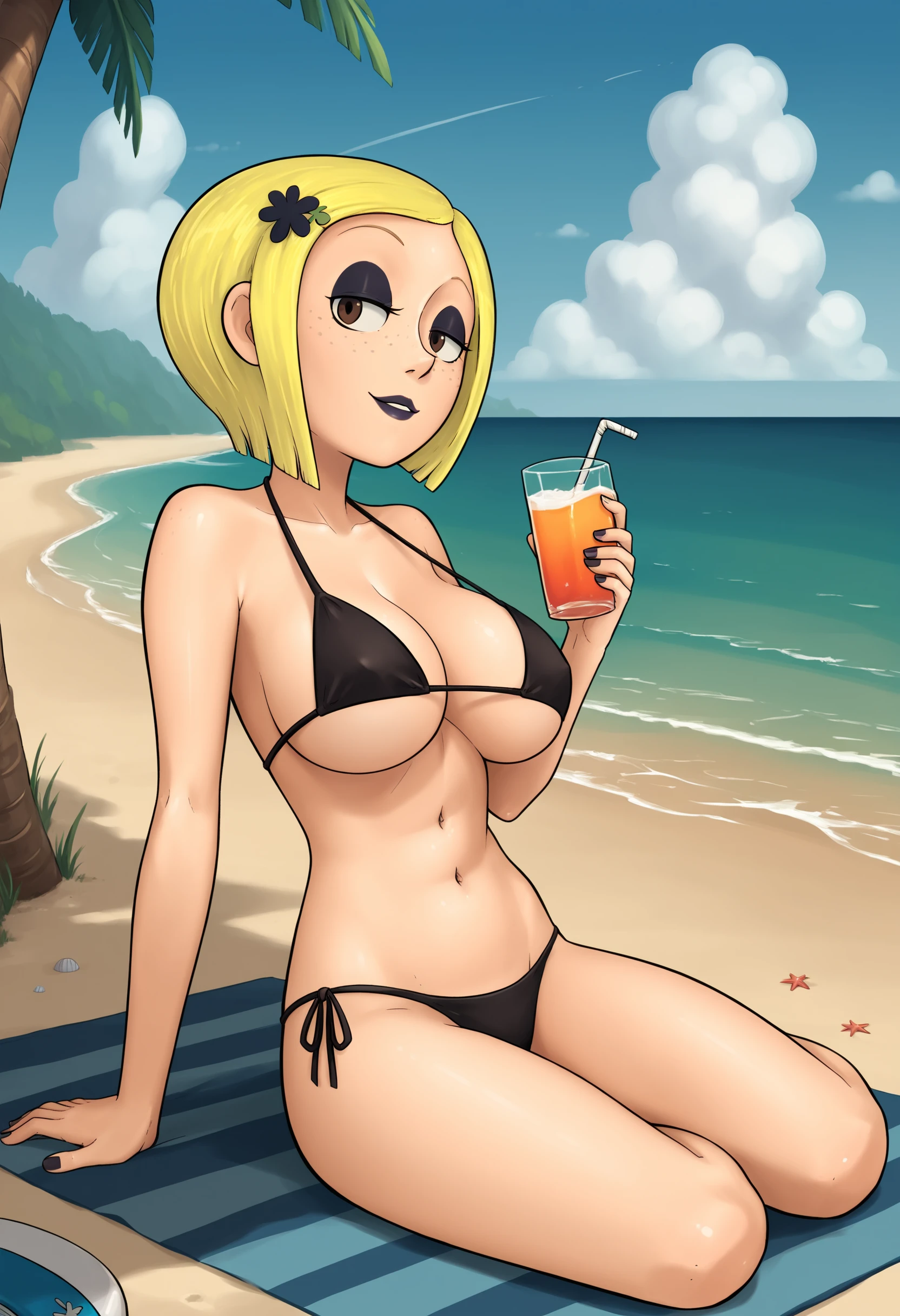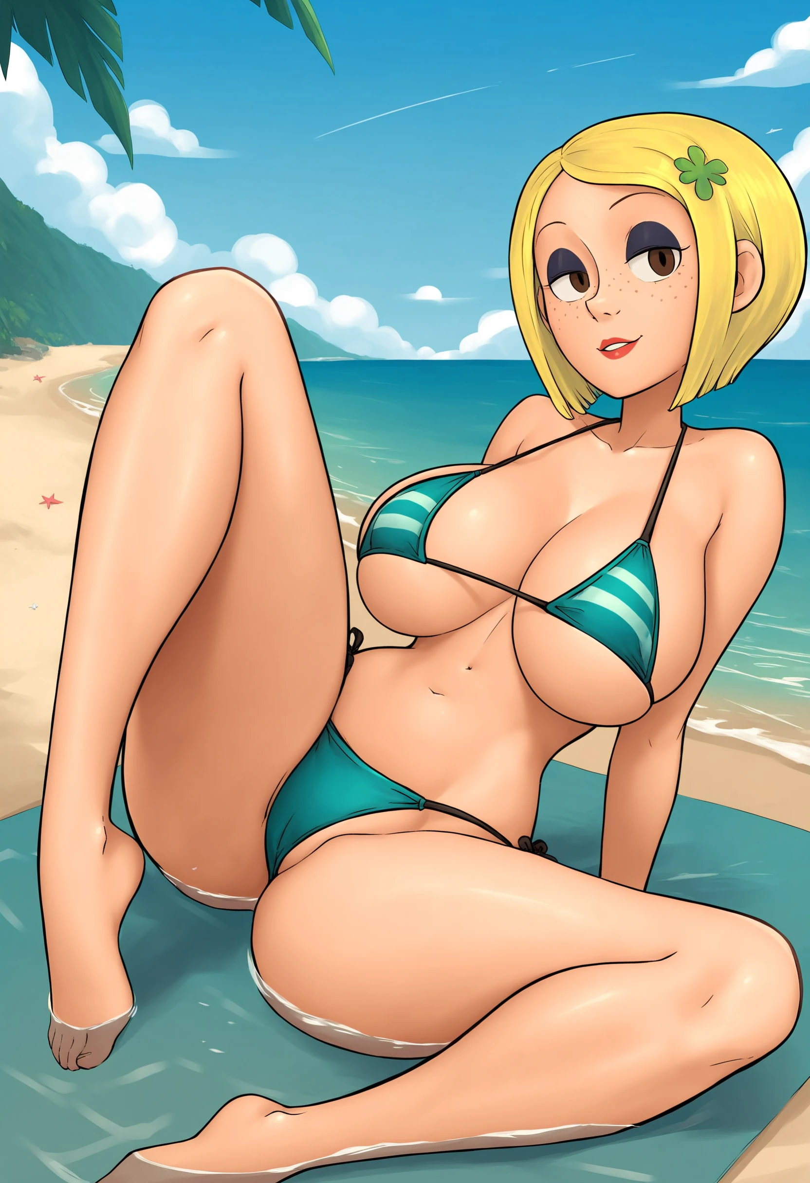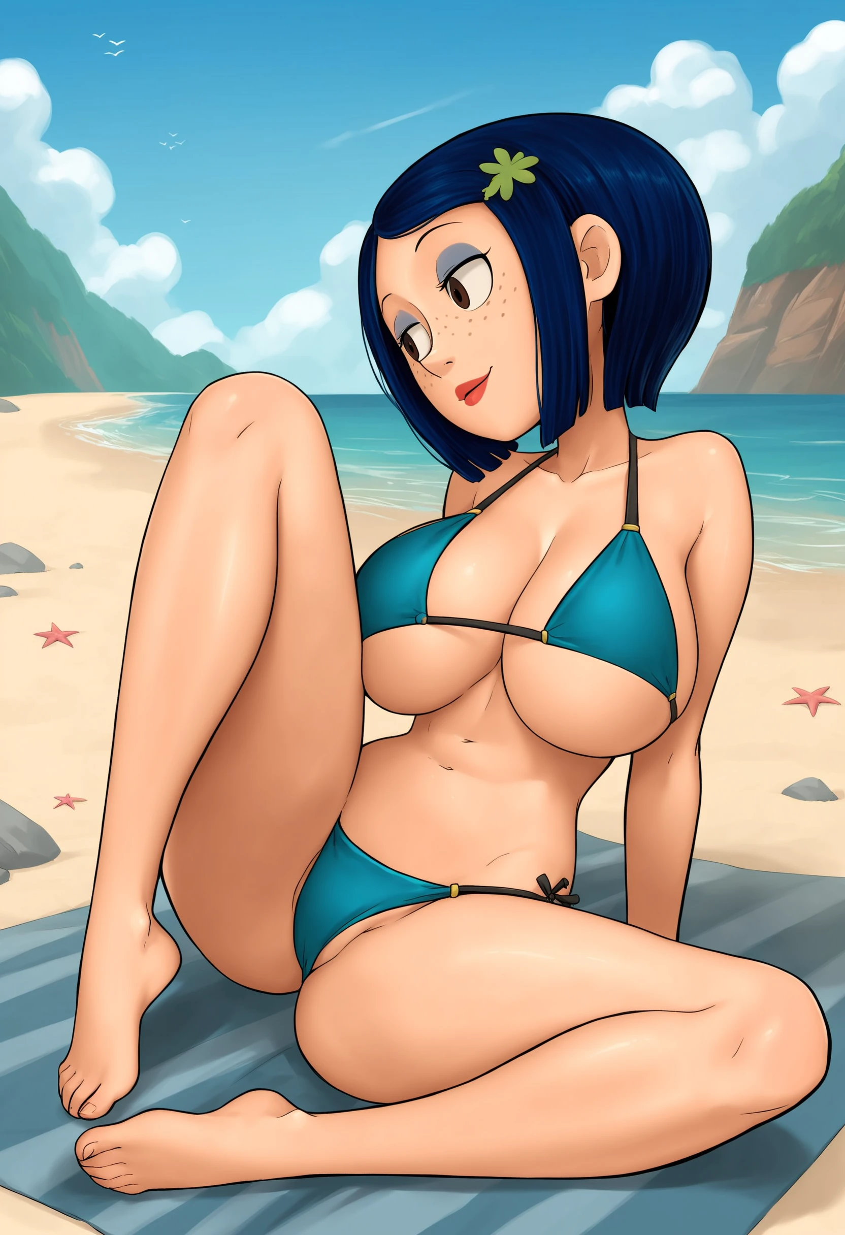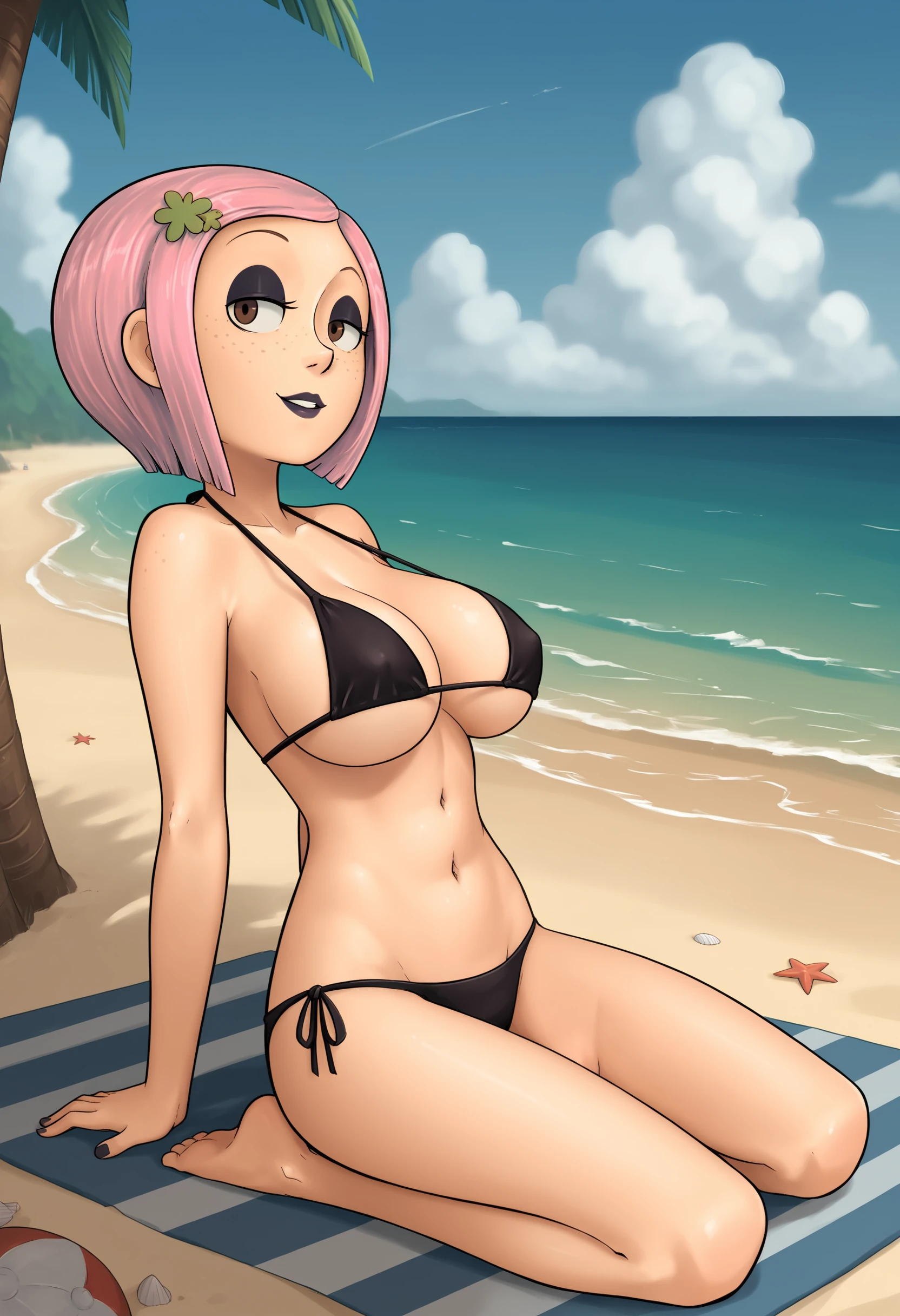Coraline_Garabatoz, freckles, brown eyes, short hair, hair ornament,