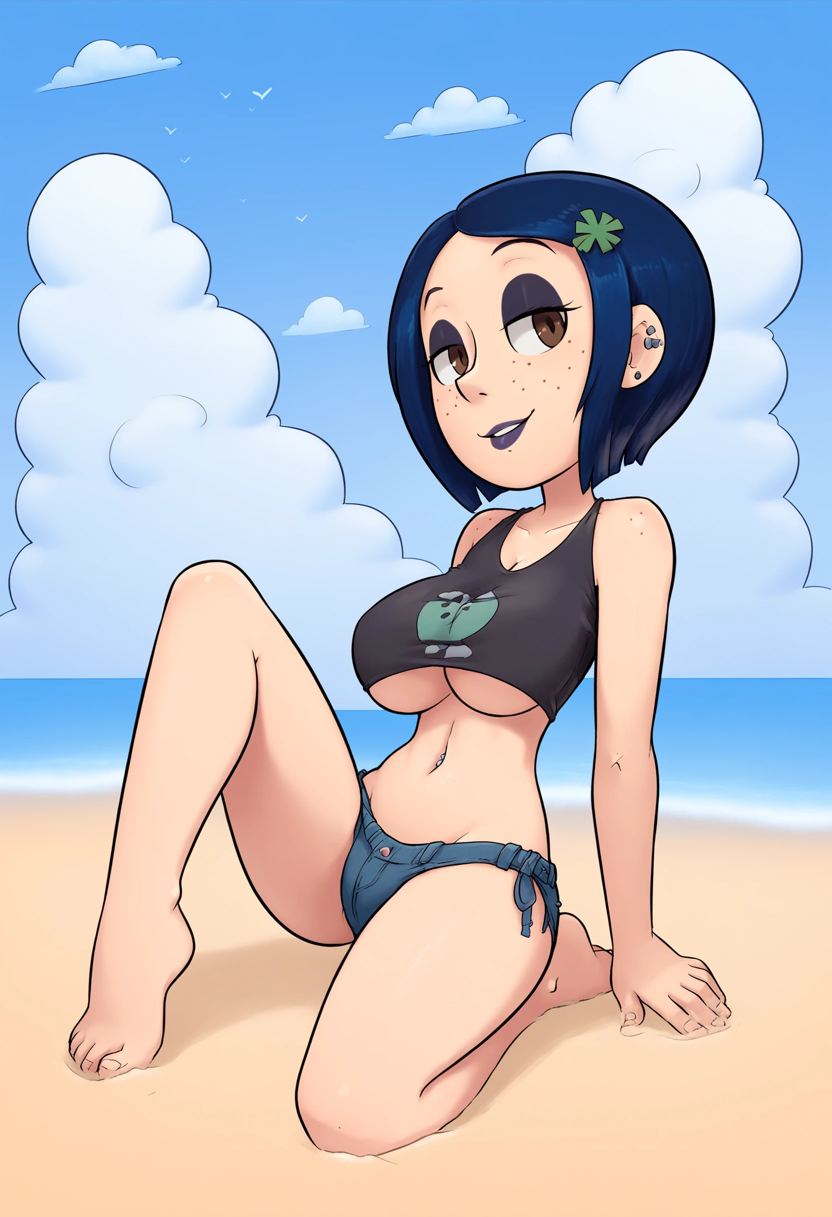 Coraline Jones (Coraline) - Garabatoz style. Done from privately sourced commissioned images by Garabatoz, from anonymous source. Coraline is an adult in all source material. The model is flexible and supports long hair, short hair, different colors of hair, and even combining with other LoRAs.