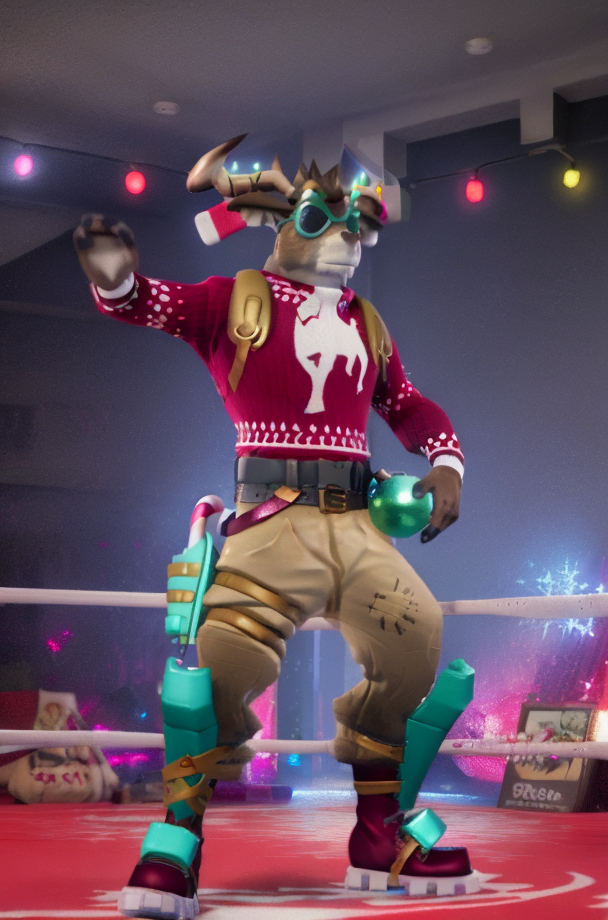 I am the Reindeer Czar, so I created my first LORA, of Dolph from Fortnite. This depicts him really well I think.