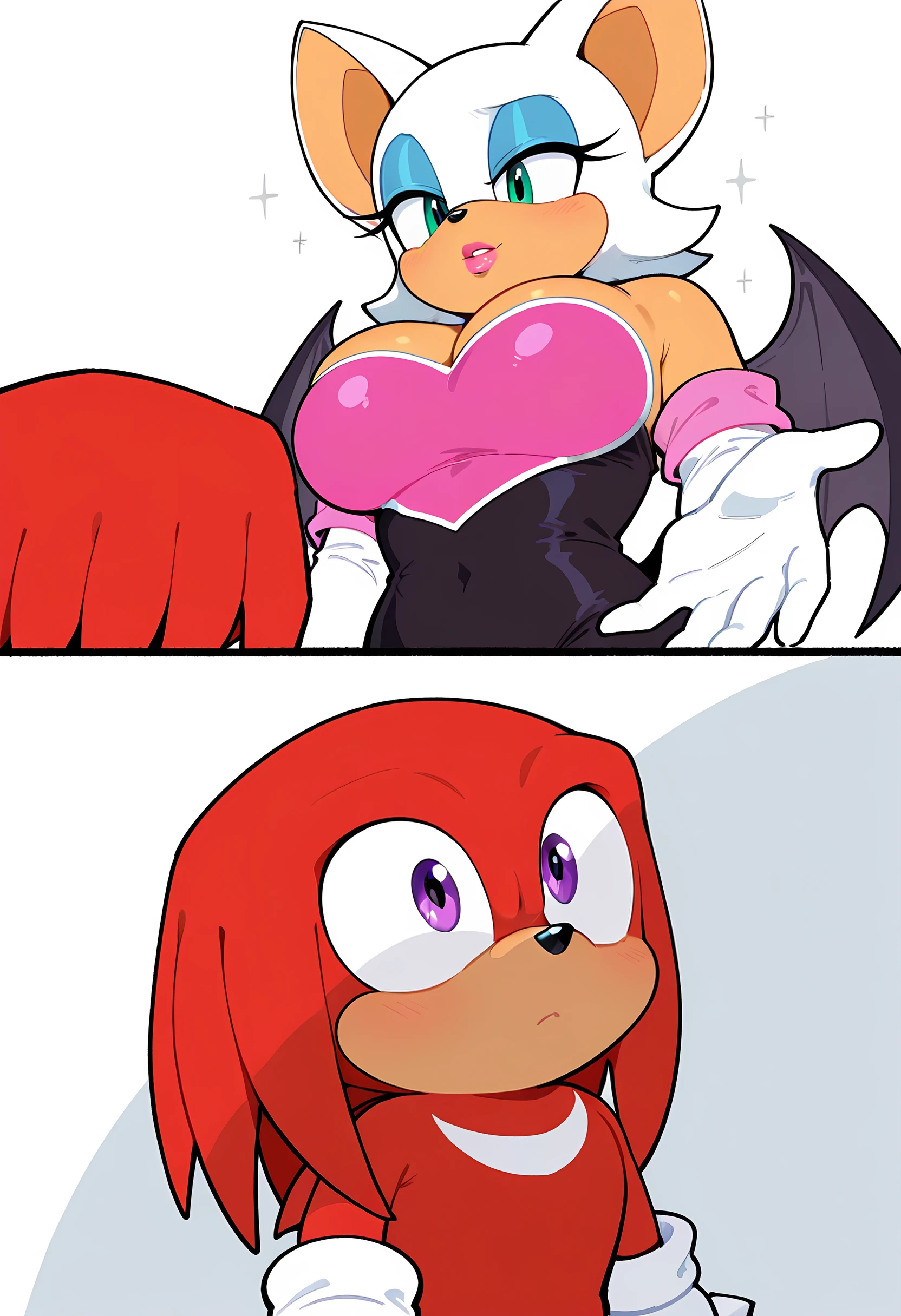 solid oval eyes, x navel, sparkle(Extra prompts to more closely replicate the actual meme. X navel can sometimes generate an x navel on the person in the 2nd panel instead of the 1st panel. Solid oval eyes and x navels should not appear without prompting, but place any in the negative prompts if you don't want to generate them)