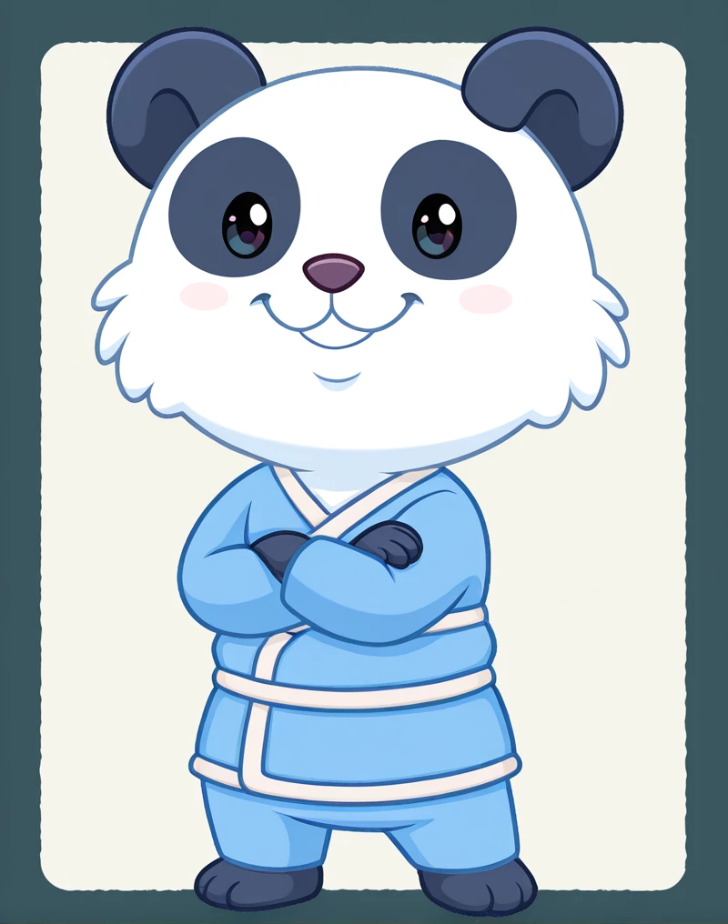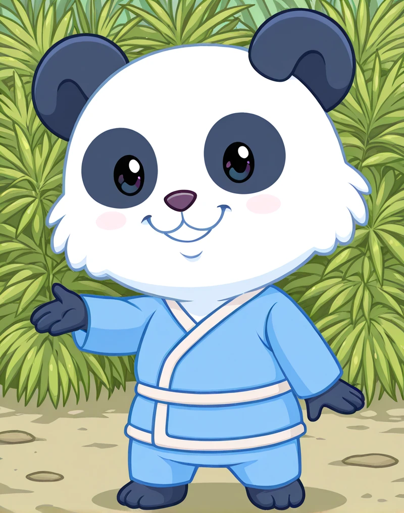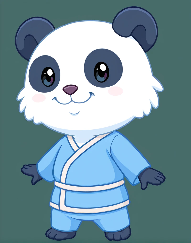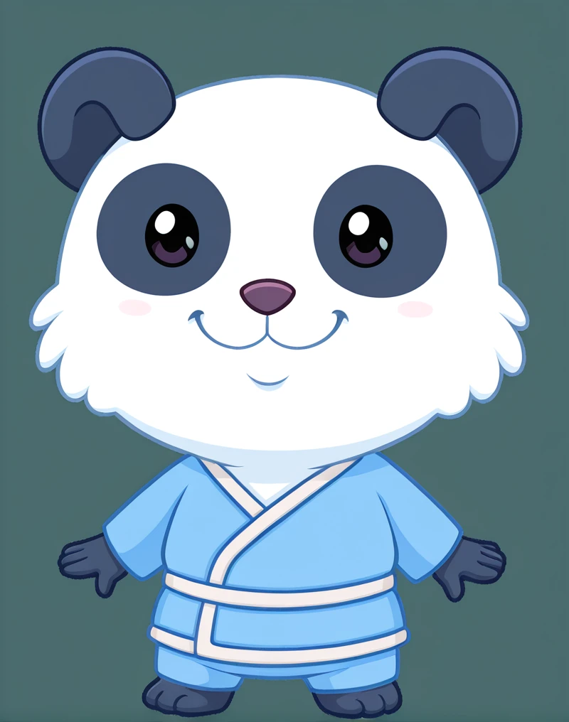 ChangpuVK, giant panda, chibi, white and gray fur, two-tone fur, furry male, 1boy, panda ears, panda nose, black eyes, blue kimono