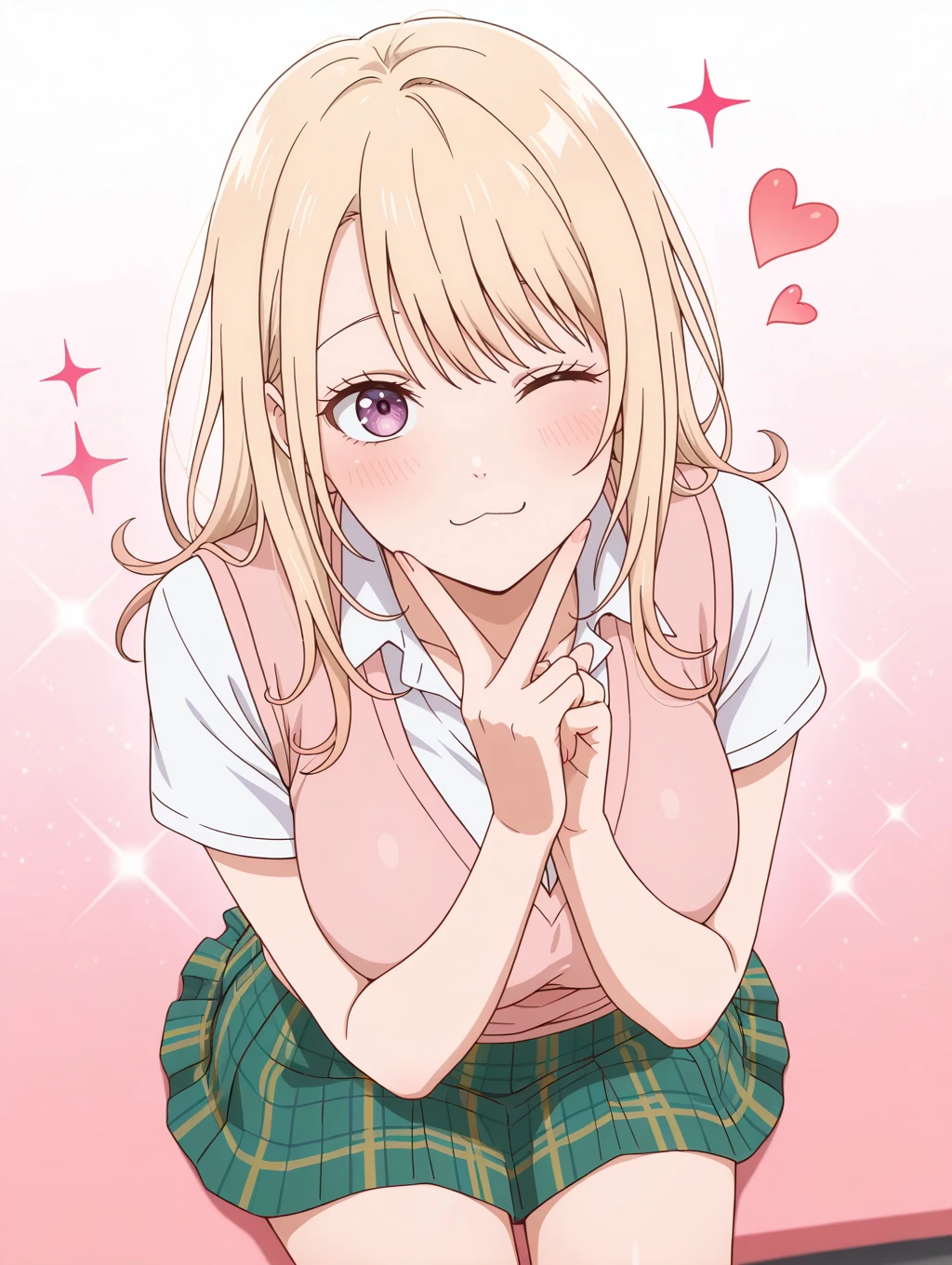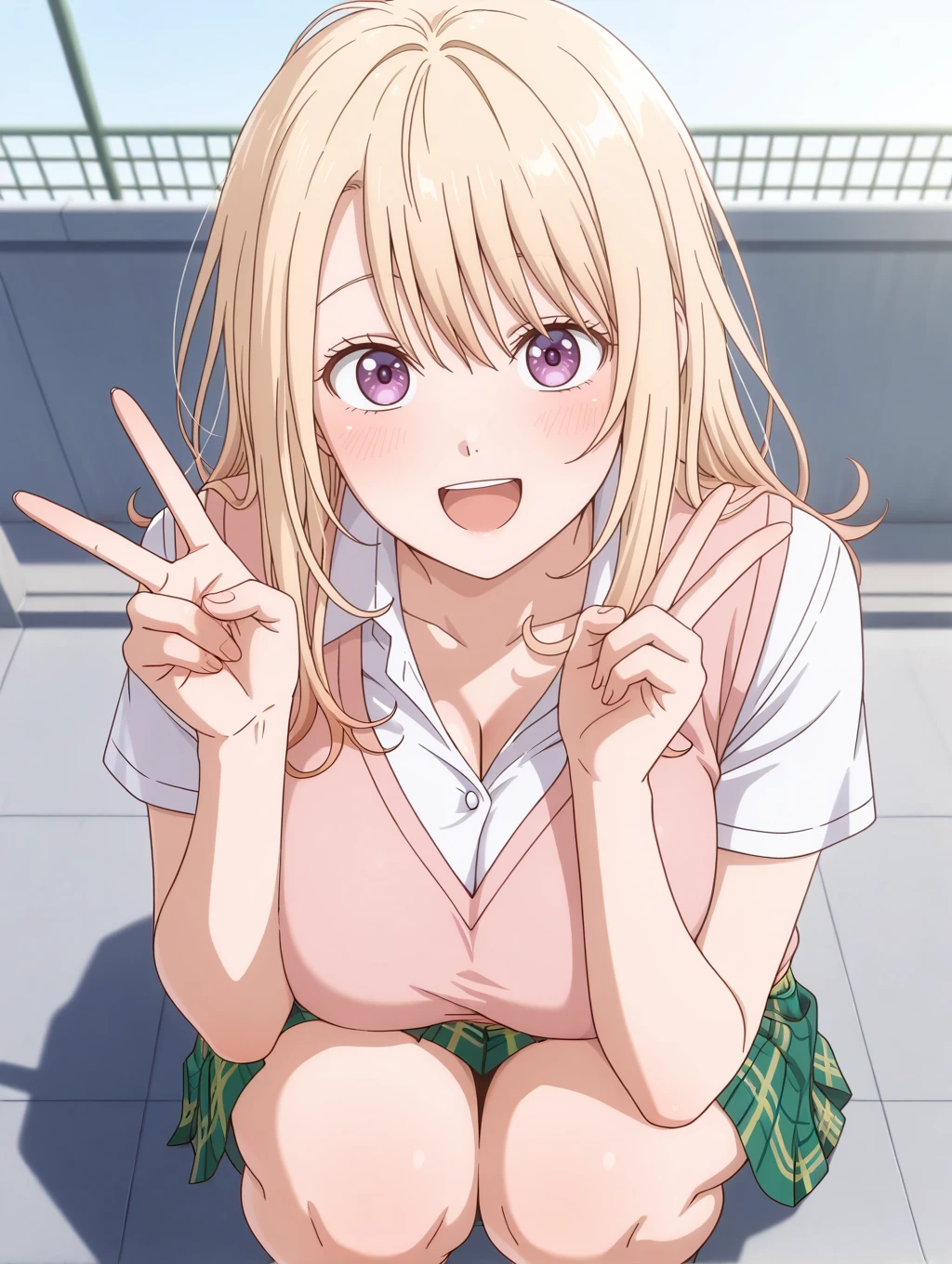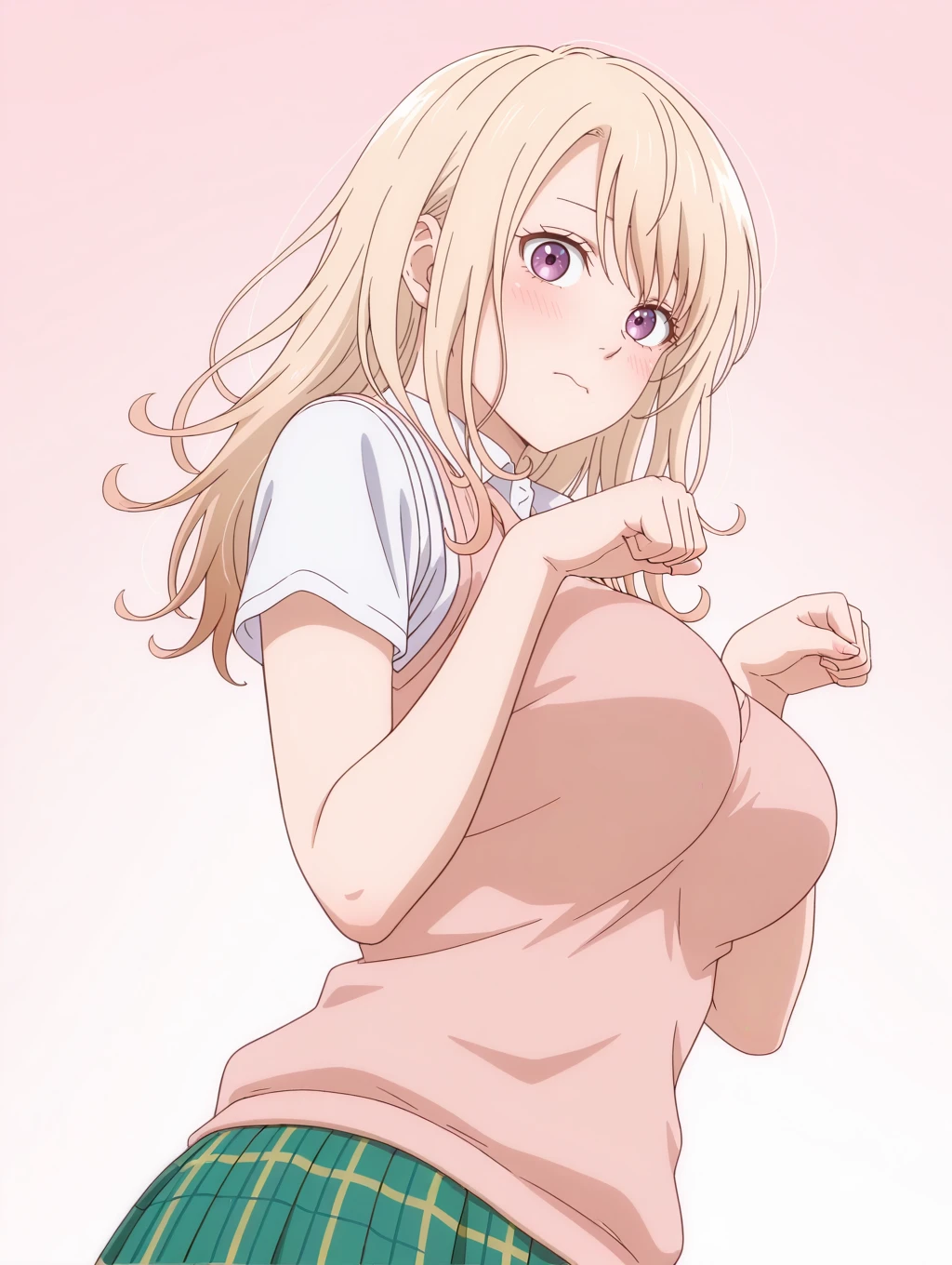 kawaimona, blonde hair, long hair, purple eyes