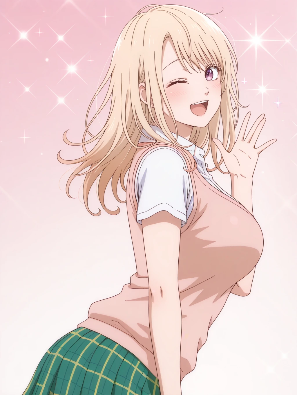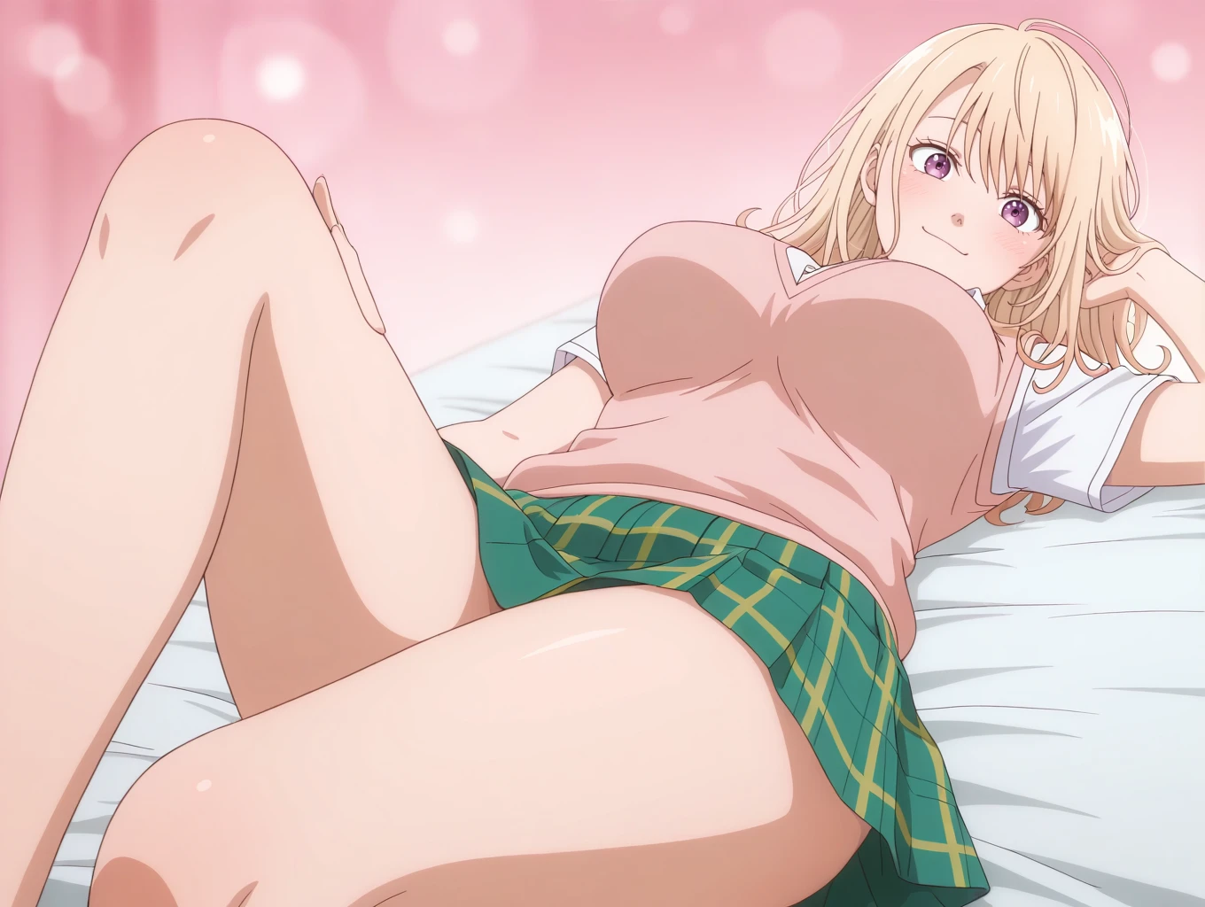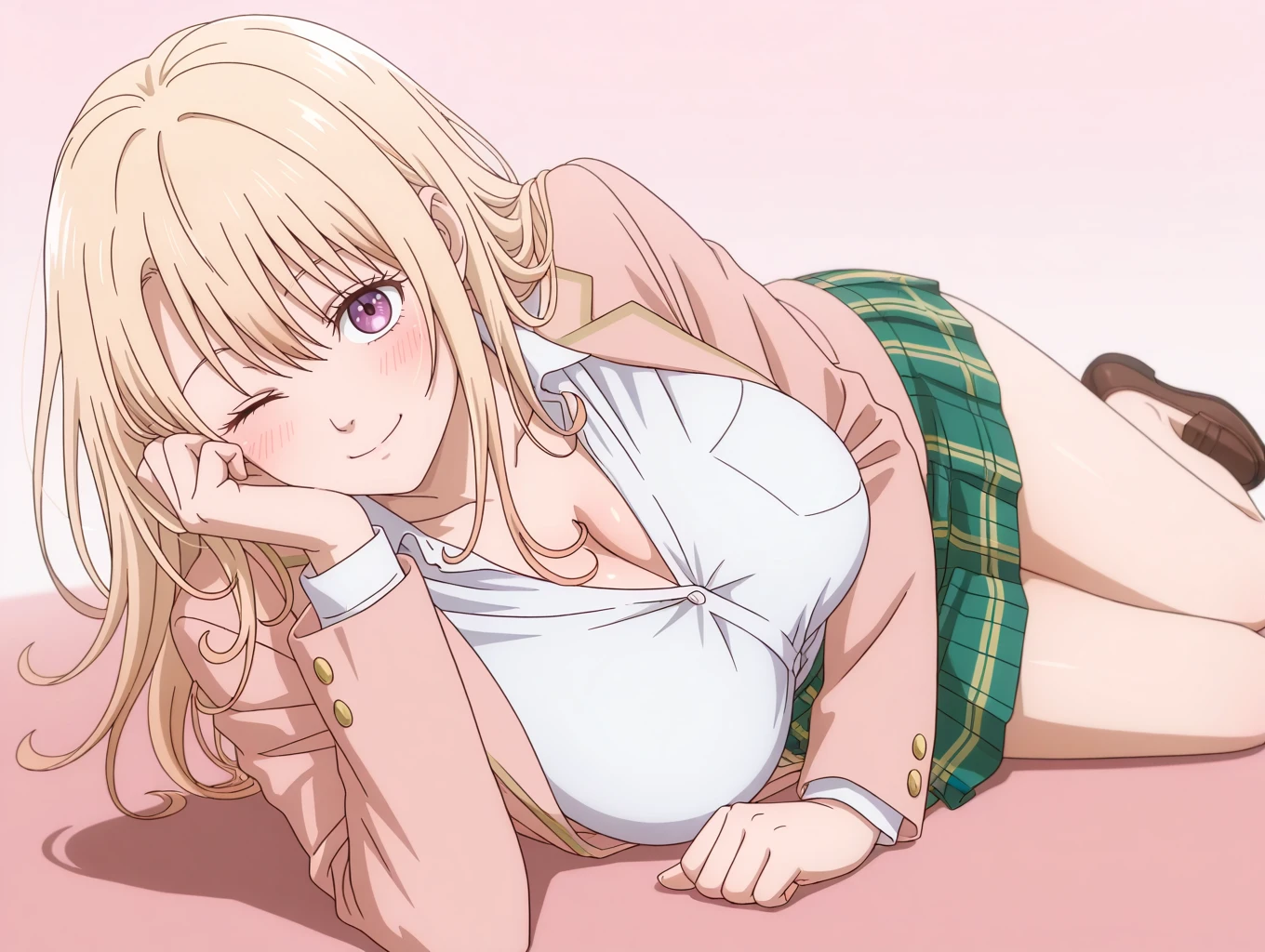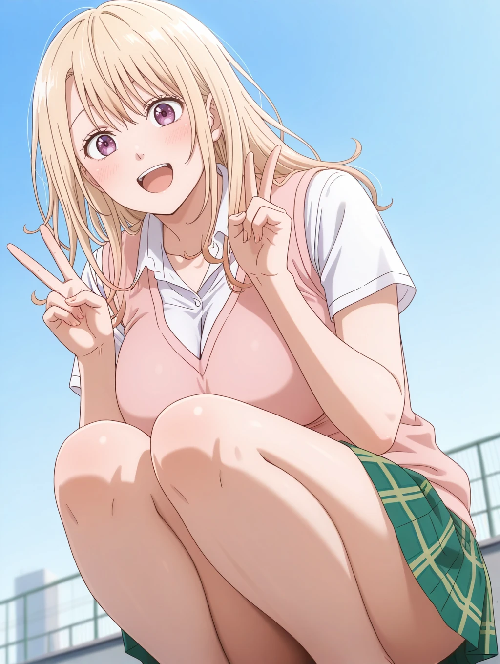 kawaimona, blonde hair, long hair, purple eyes