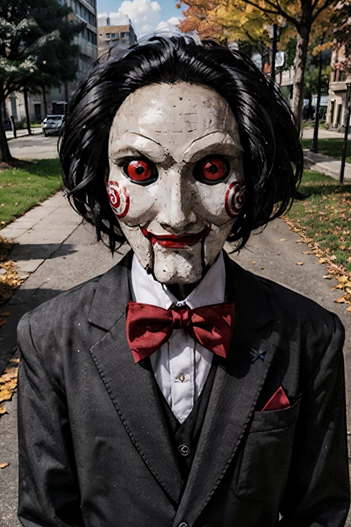 Billy is a puppet that has appeared in the Saw franchise. It was used by John Kramer to talk with his test subjects by delivering recorded messages, often appearing on a television screen or occasionally in person to describe the details of the traps and the means by which the test subjects could survive.