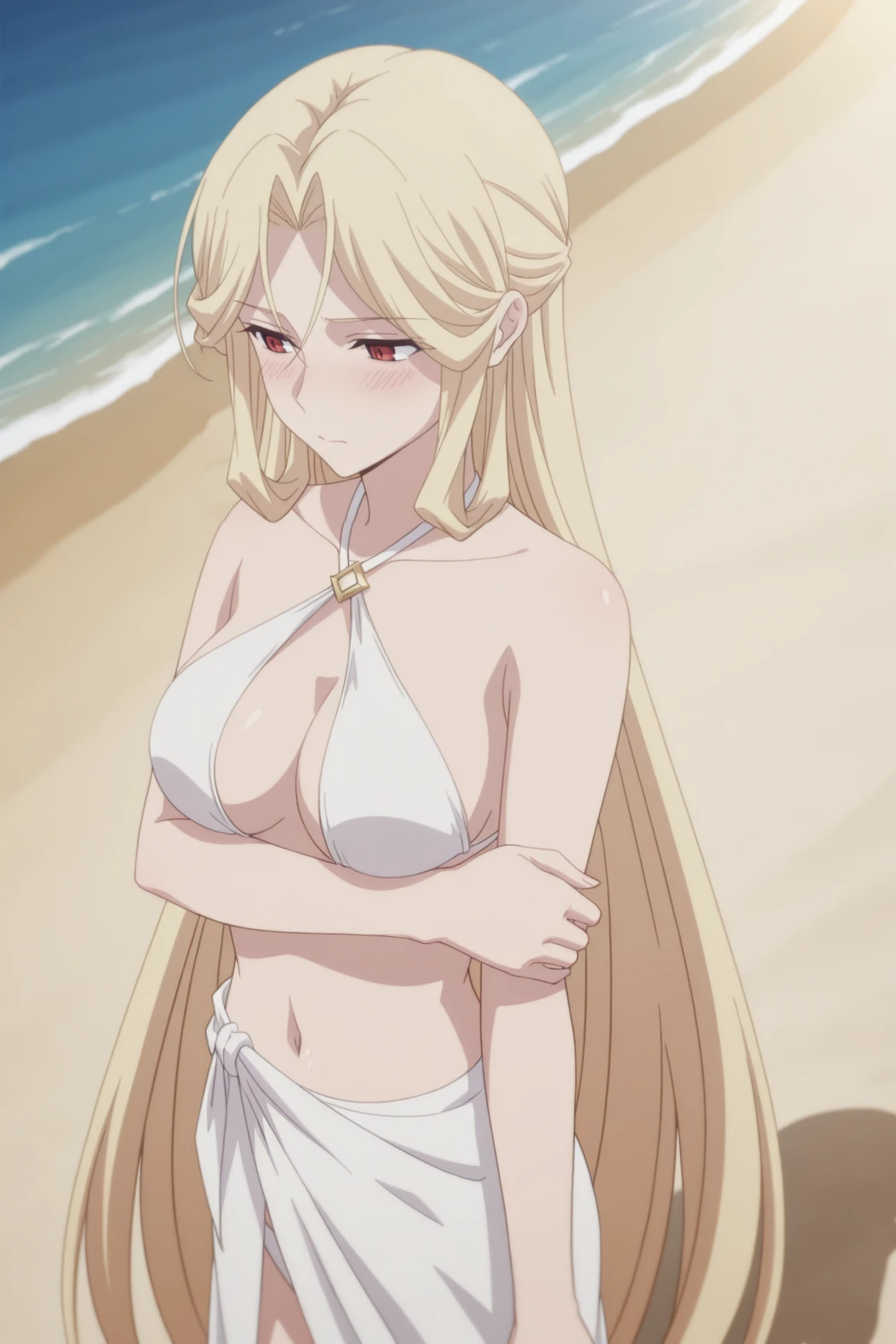 Millavair, red eyes, blonde_hair, parted bangs, hair_intakes, very long hair