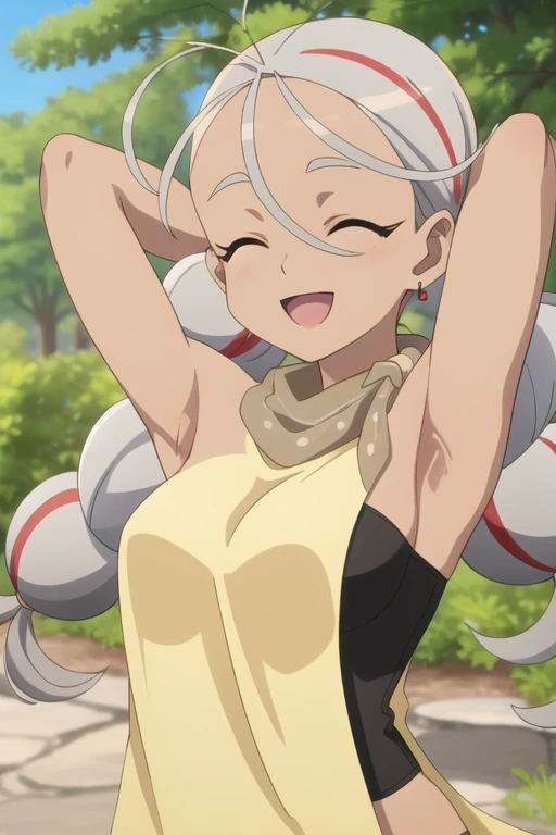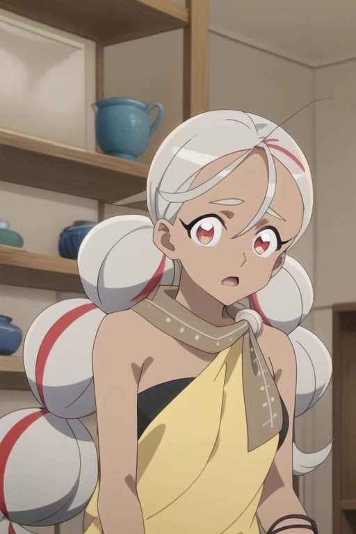Trigger Words: amoru (towa no yuugure), dark skin, dark-skinned female, two-tone hair, twin braids, multicolored hair, red eyes, grey hair, red hair, scarf, streaked hair,
