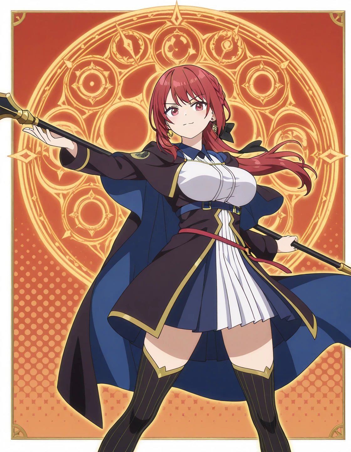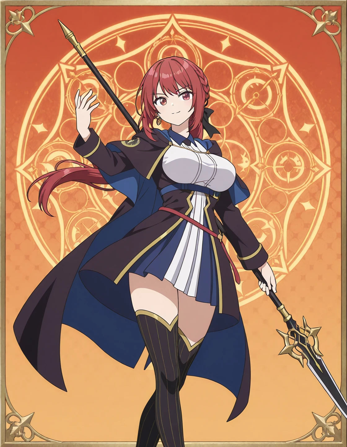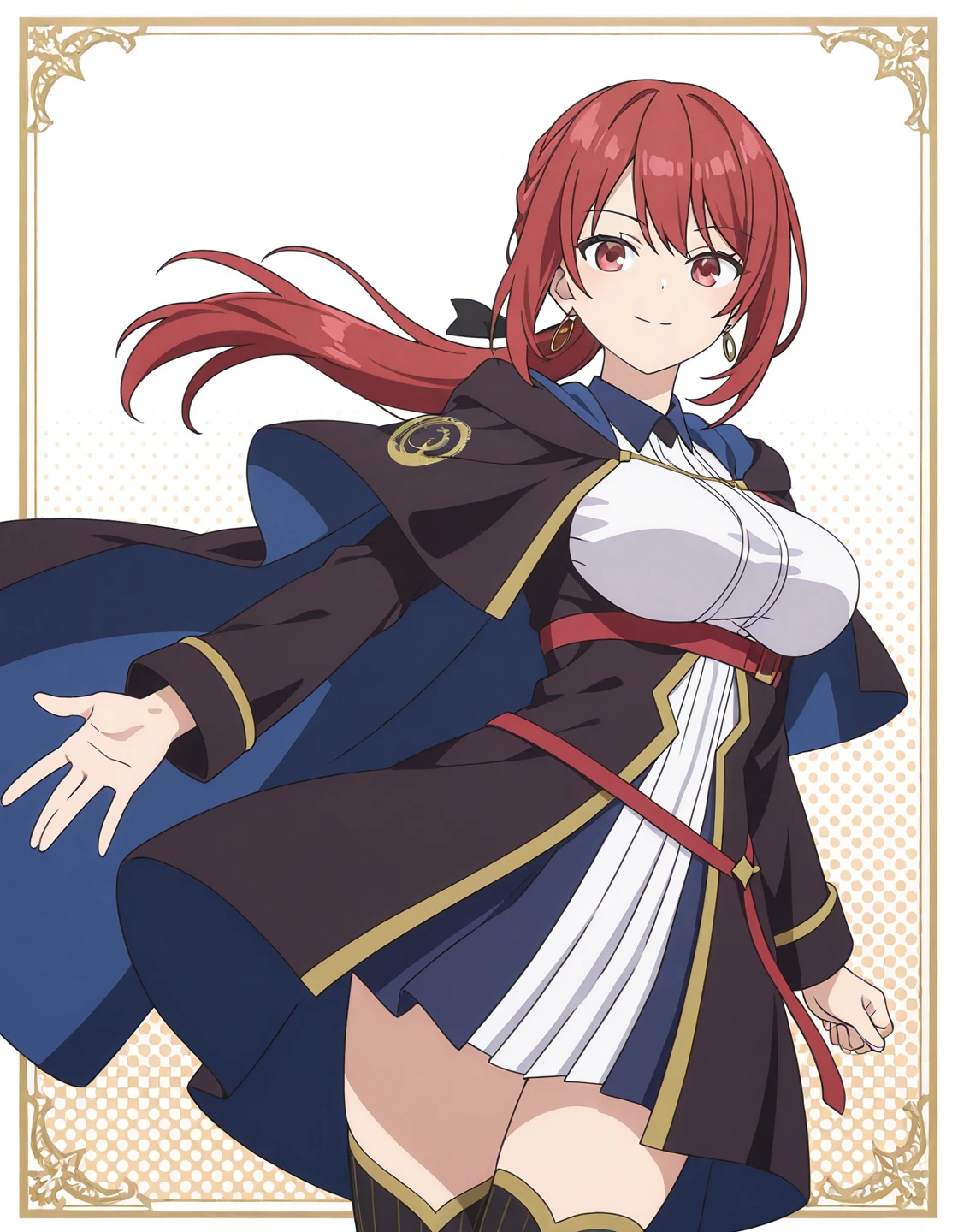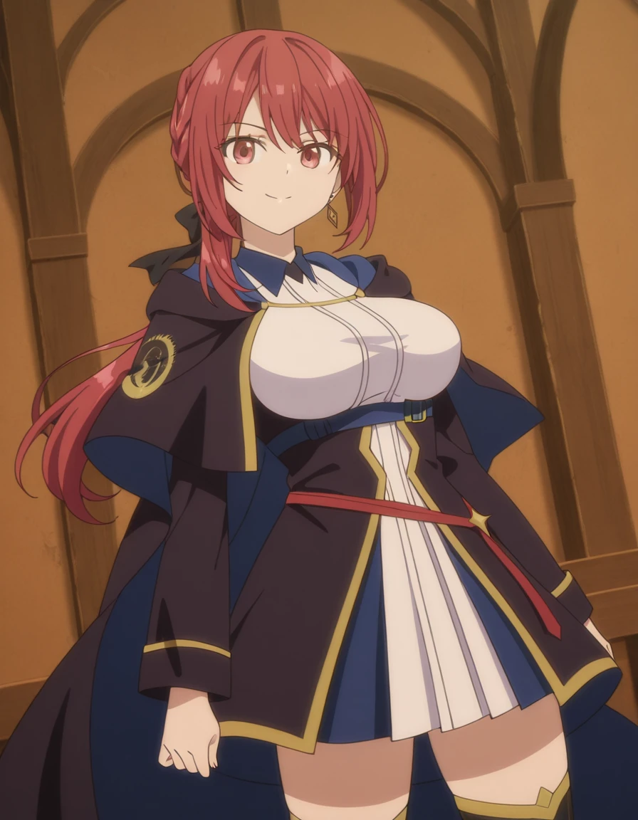 She is characterized by her long red hair, often neatly styled to match her composed demeanor, striking eyes that convey confidence, and a well-proportioned, athletic figure shaped by years of training.