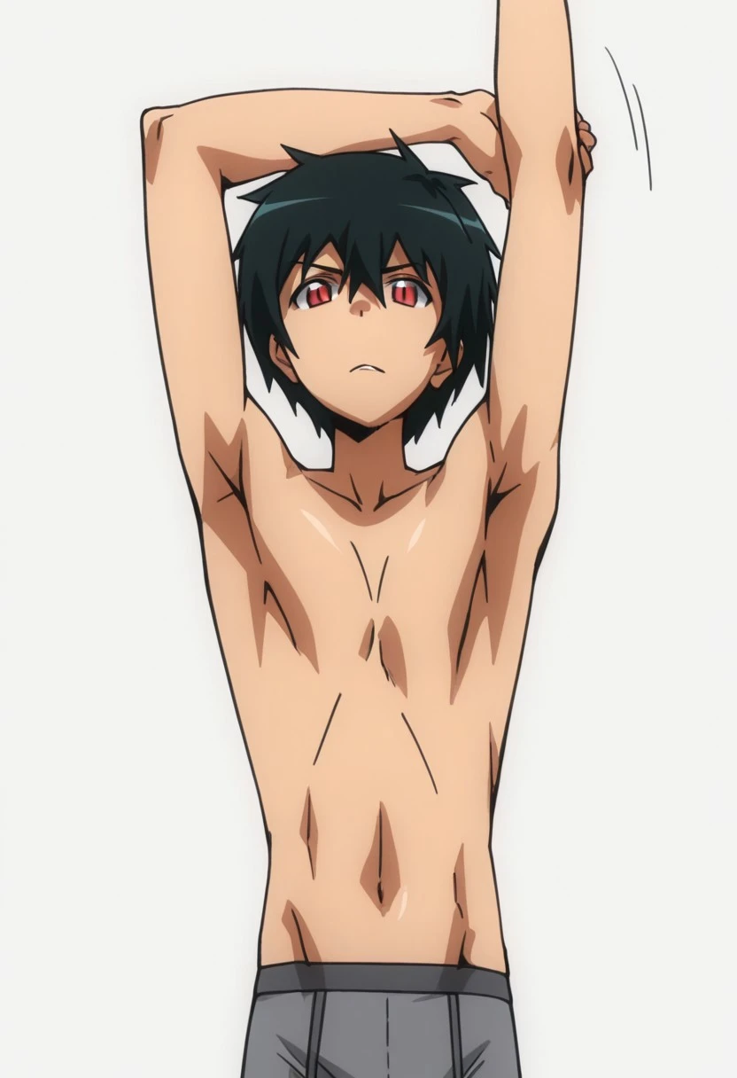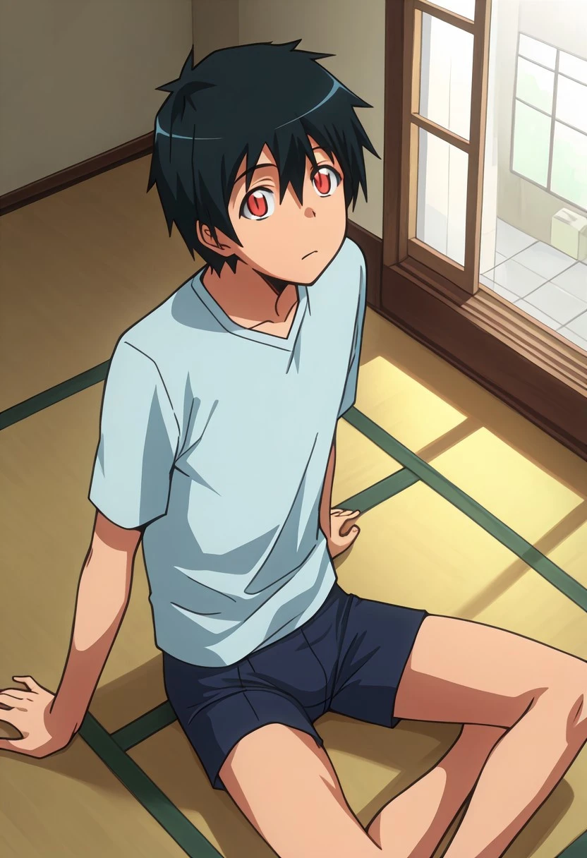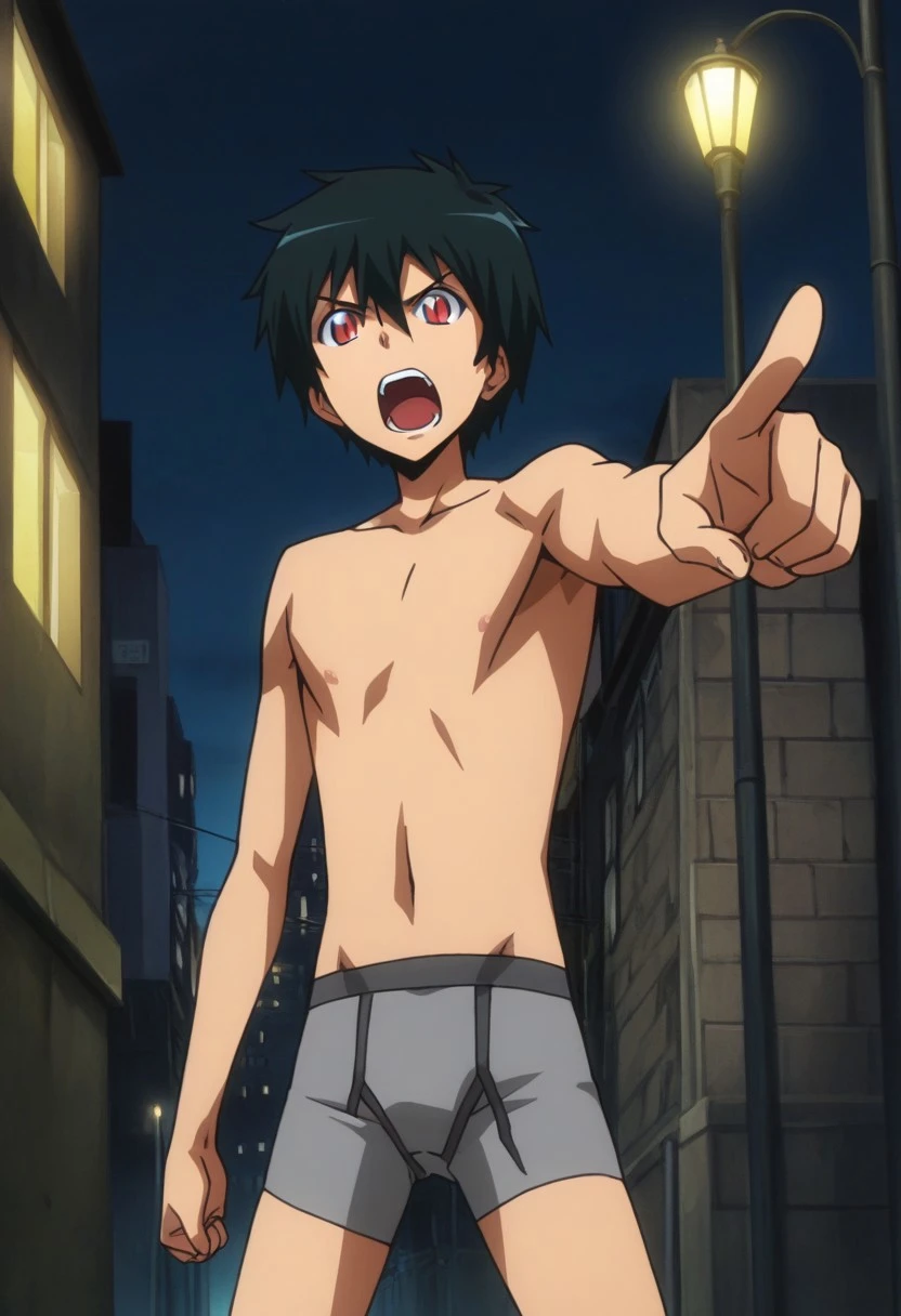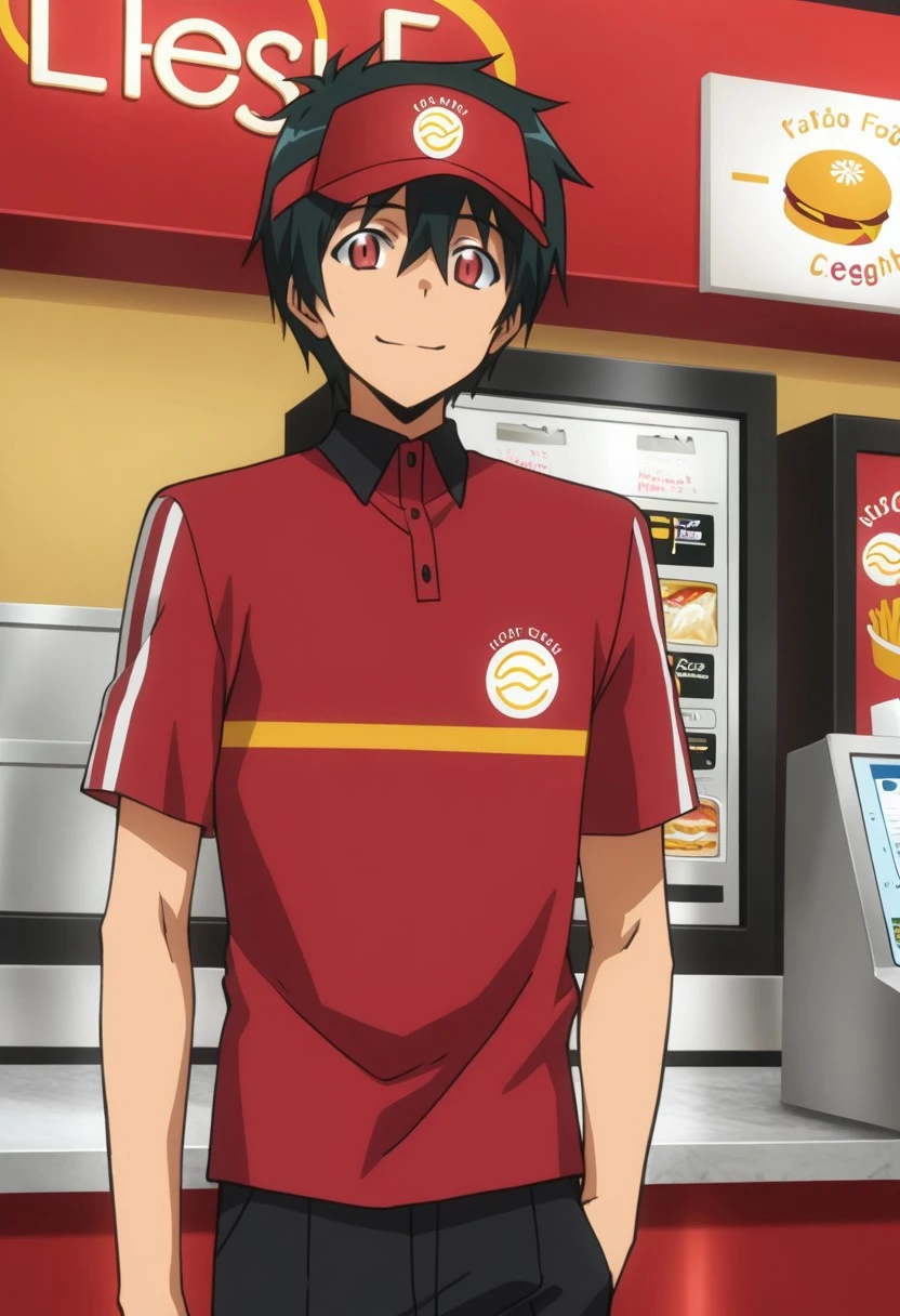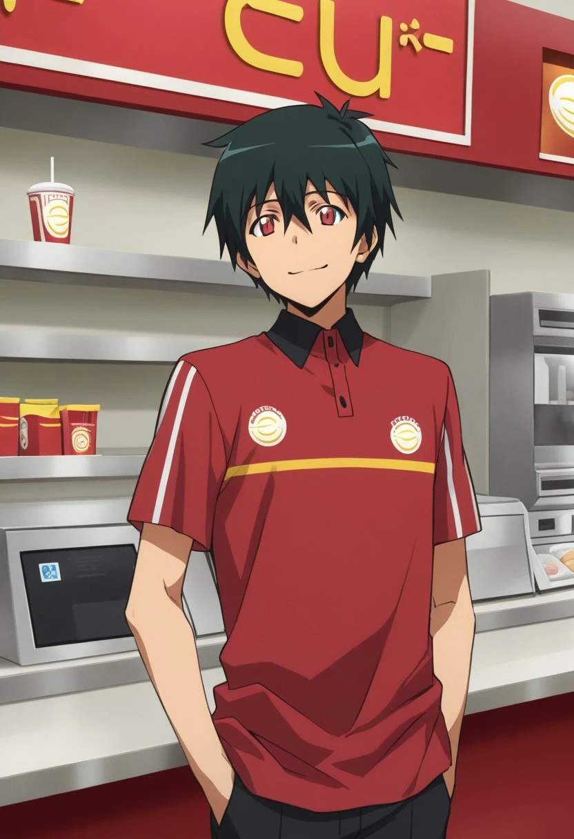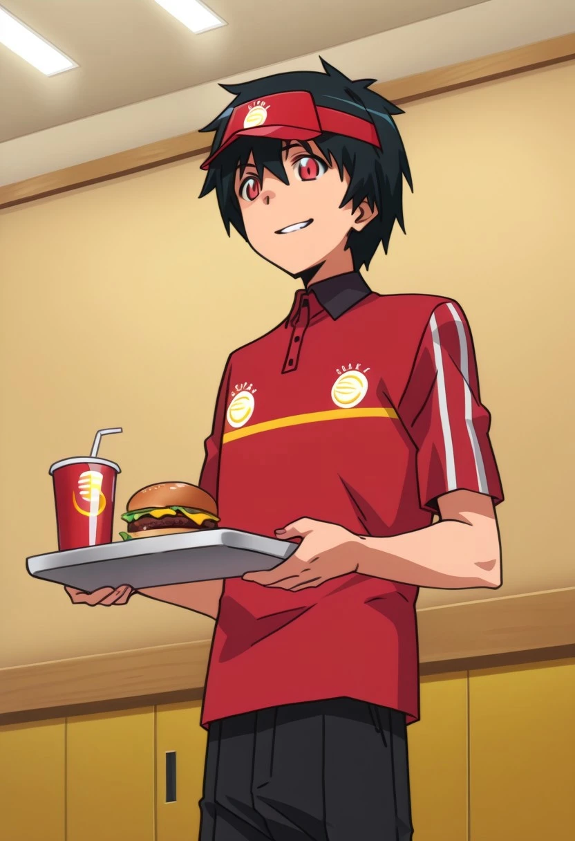 Sadao Maou, black-green hair, red eyes, slit pupils