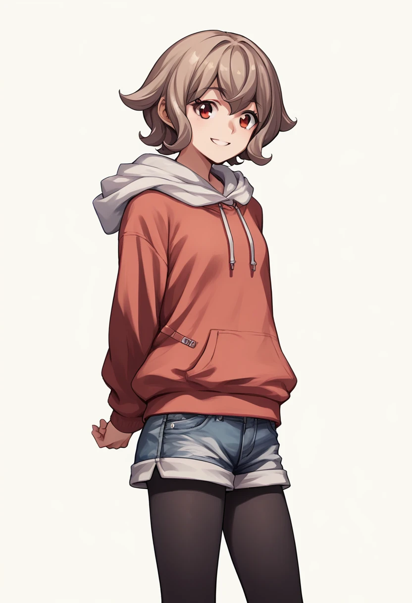 hood, hoodie, black pantyhose, shorts, pantyhose under shorts