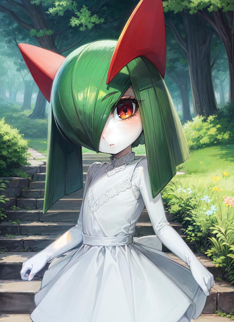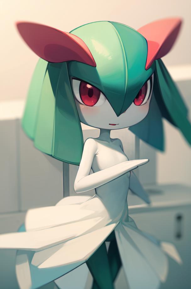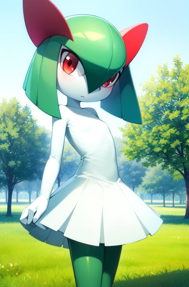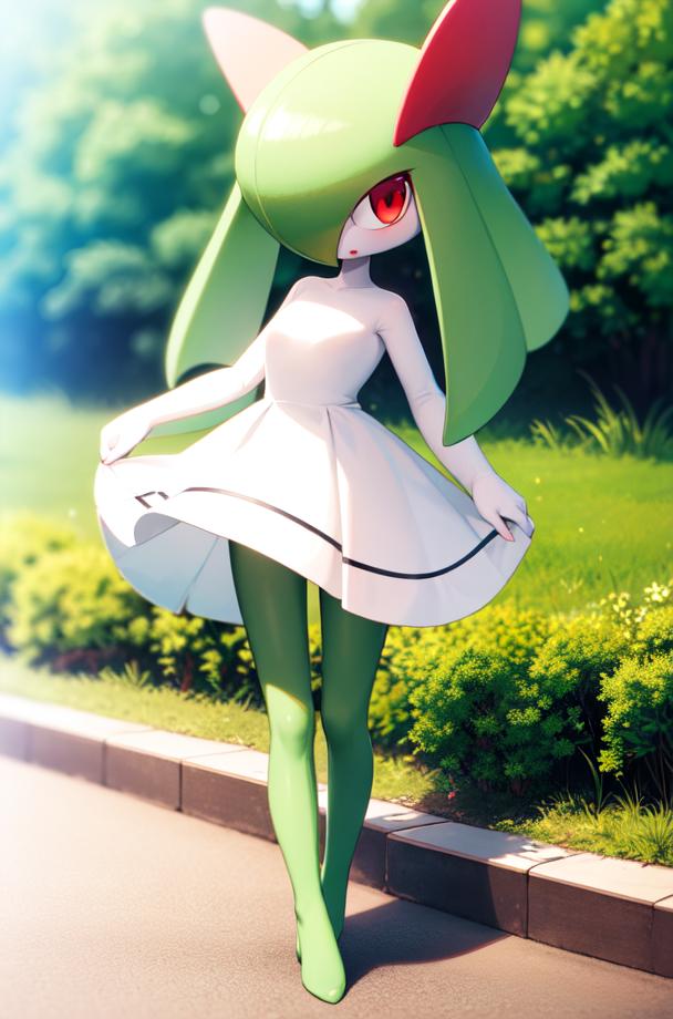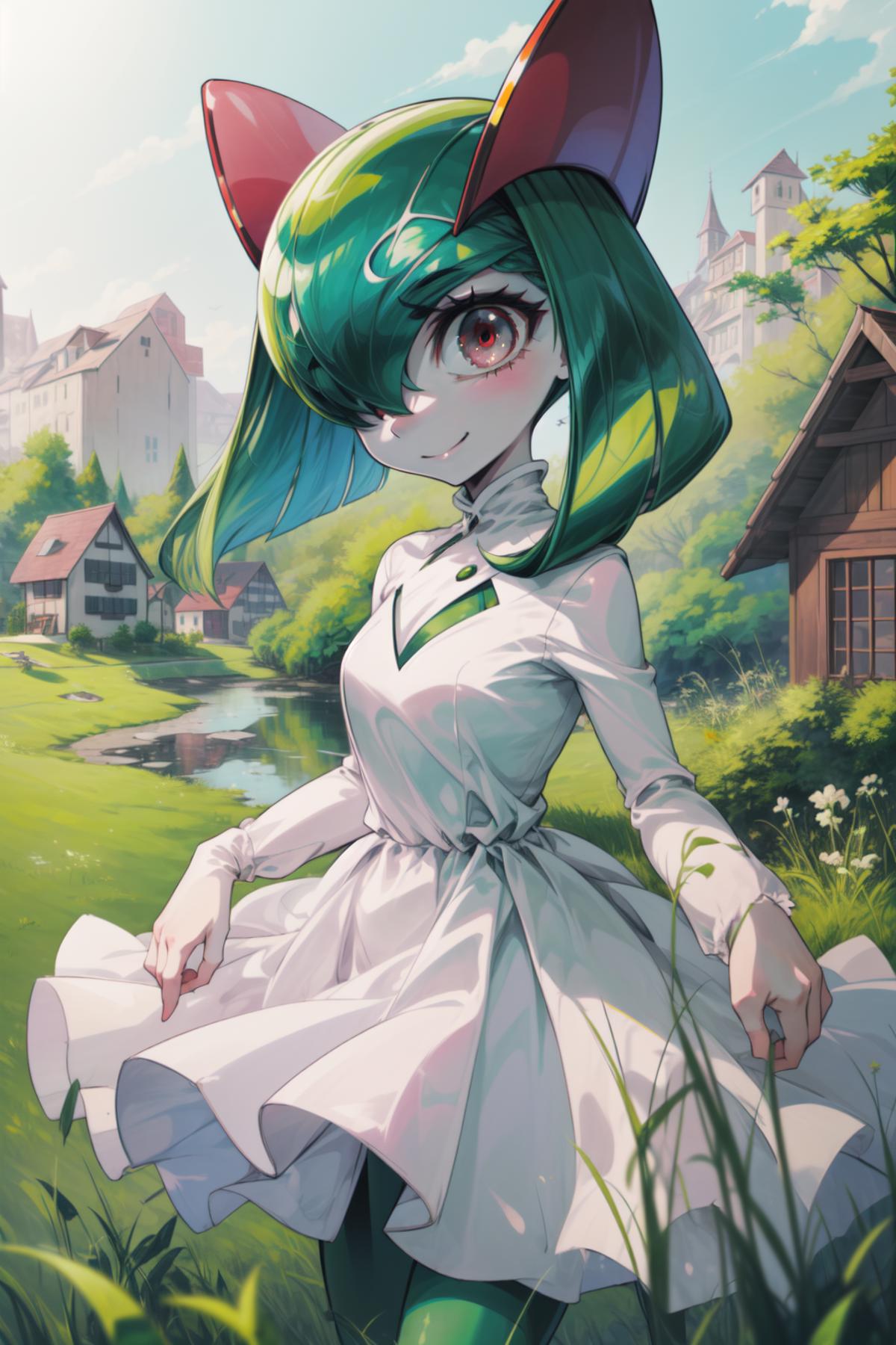 To actually prompt Kirlia you should include most if not all of the required tags which I will reiterate here: kirlia, green hair, red eyes, white dress, green skin