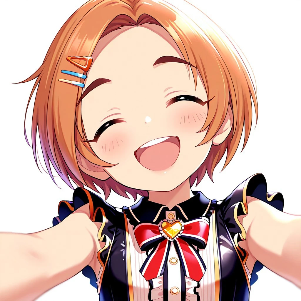 orange hair,short hair,hairclip,yellow eyes