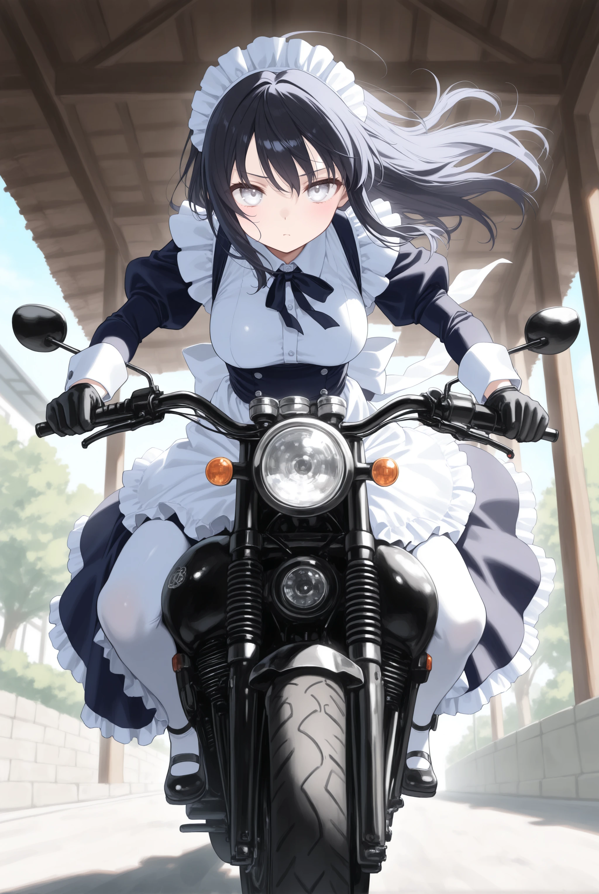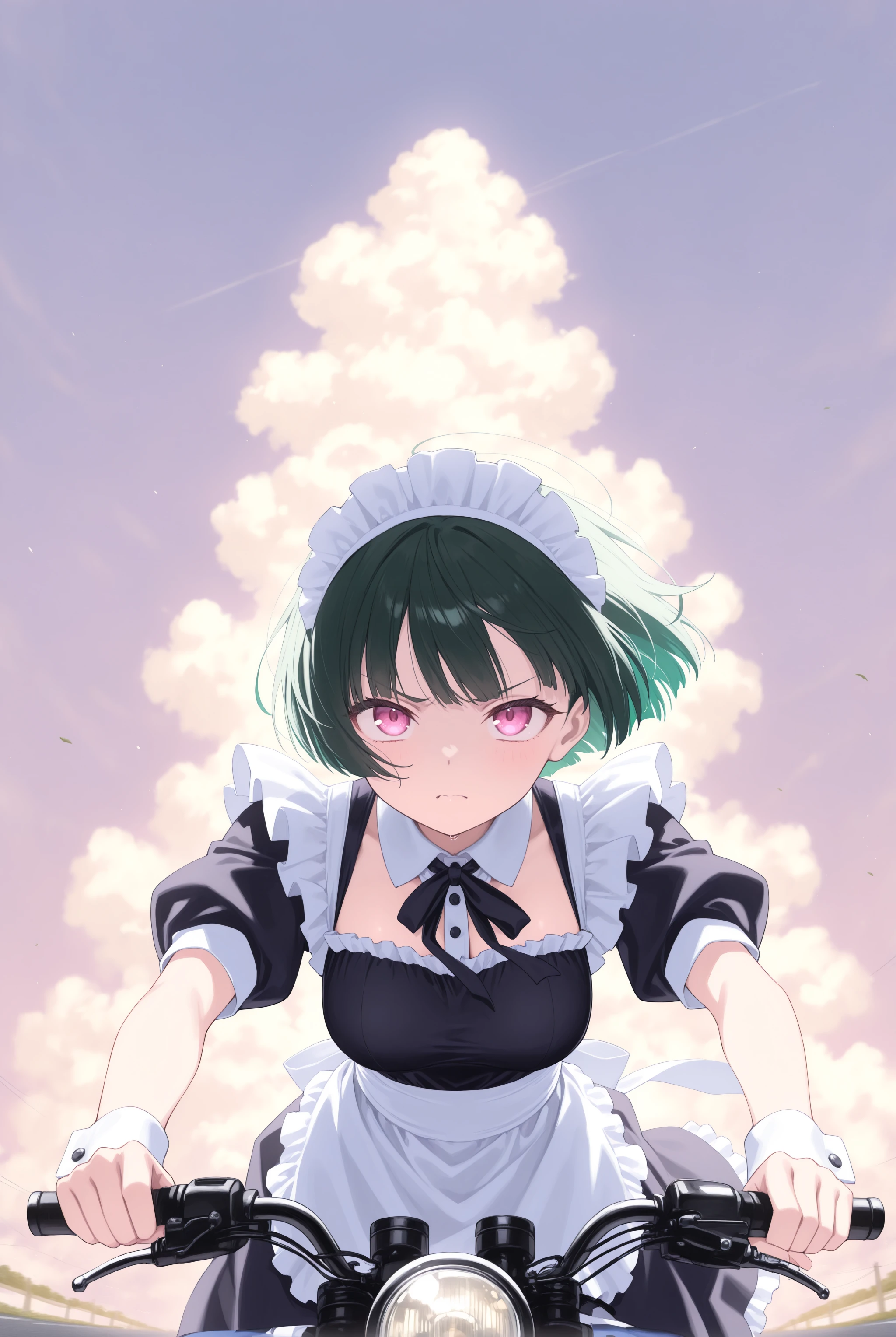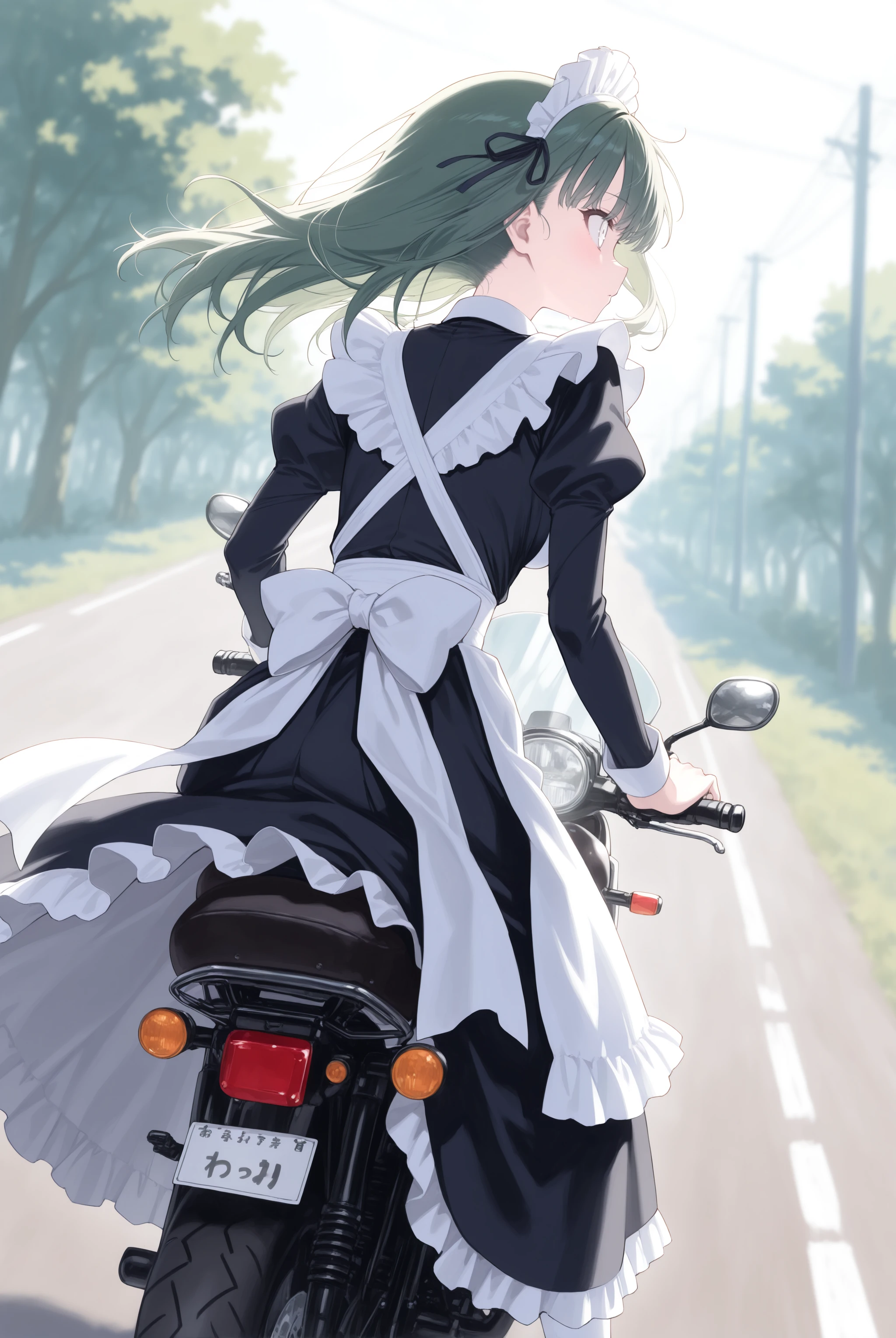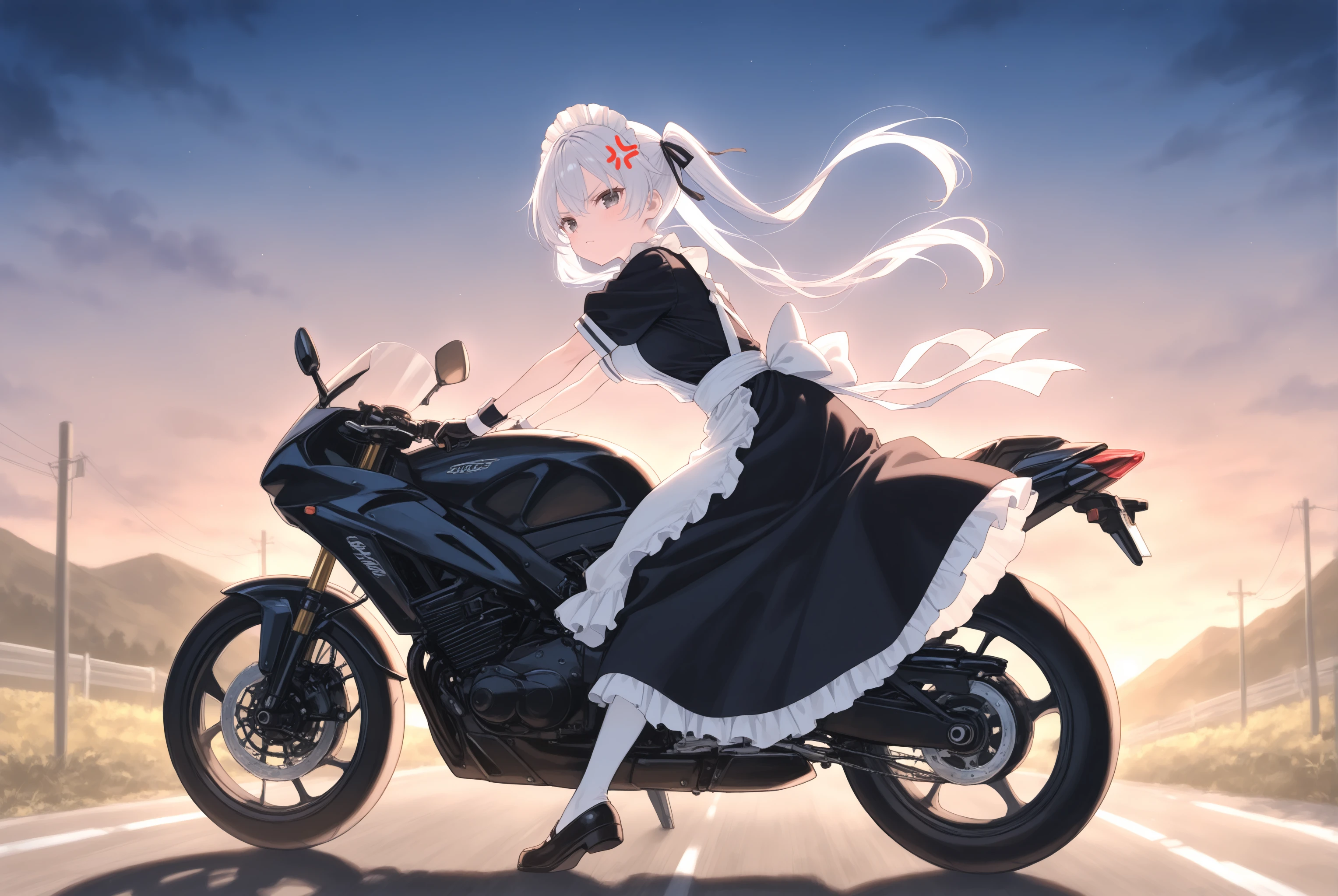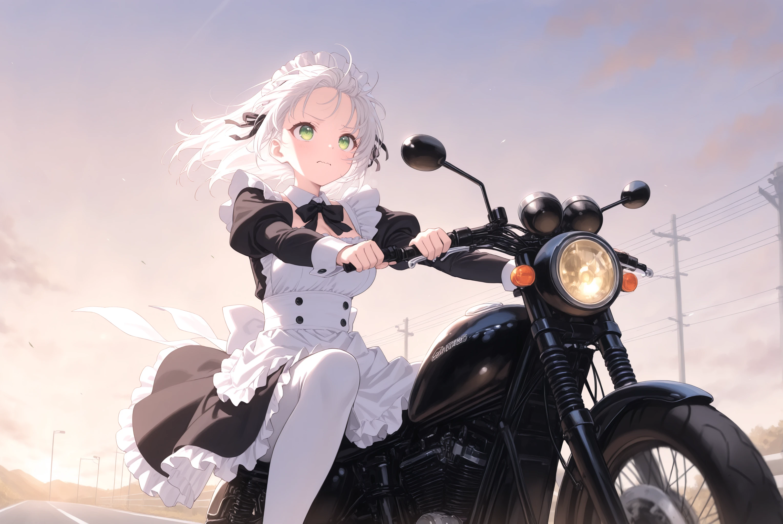 元から学習はされていますがバイクの造形や姿勢を改善させます。トリガー以外で motor vehicle, motorcycle, outdoors, riding, road, driving, floating hair, wind, headlight 辺りはお好みで。
