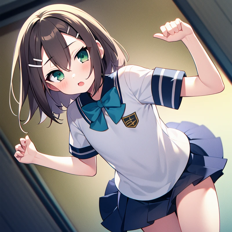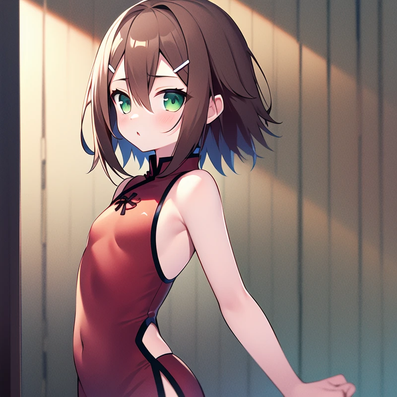 hideyoshi_kinoshita, brown hair, green eyes, hair ornament, hairclip, hair between eyes, flat chest, 1boy, male focus, otoko no ko,