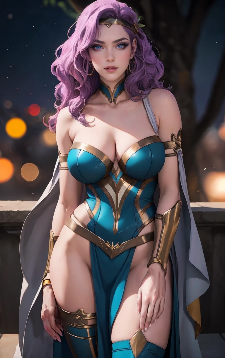 1girl, long hair, purple hair, breasts, lipstick, makeup, blue eyes, pink eyes, thighs,