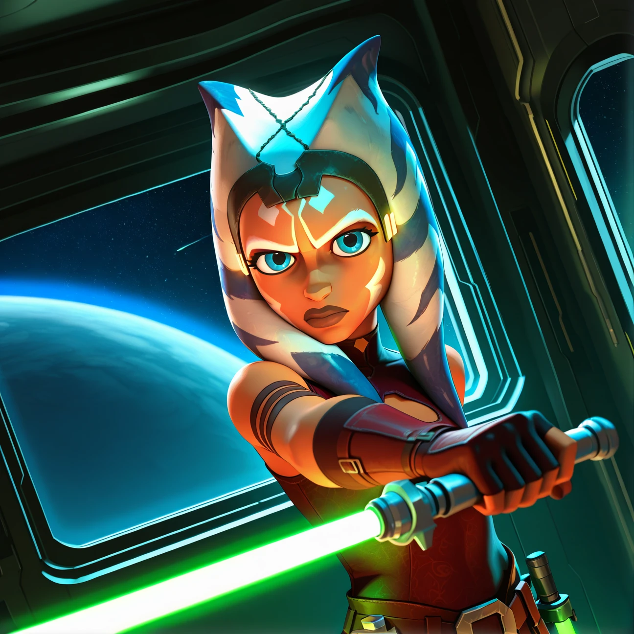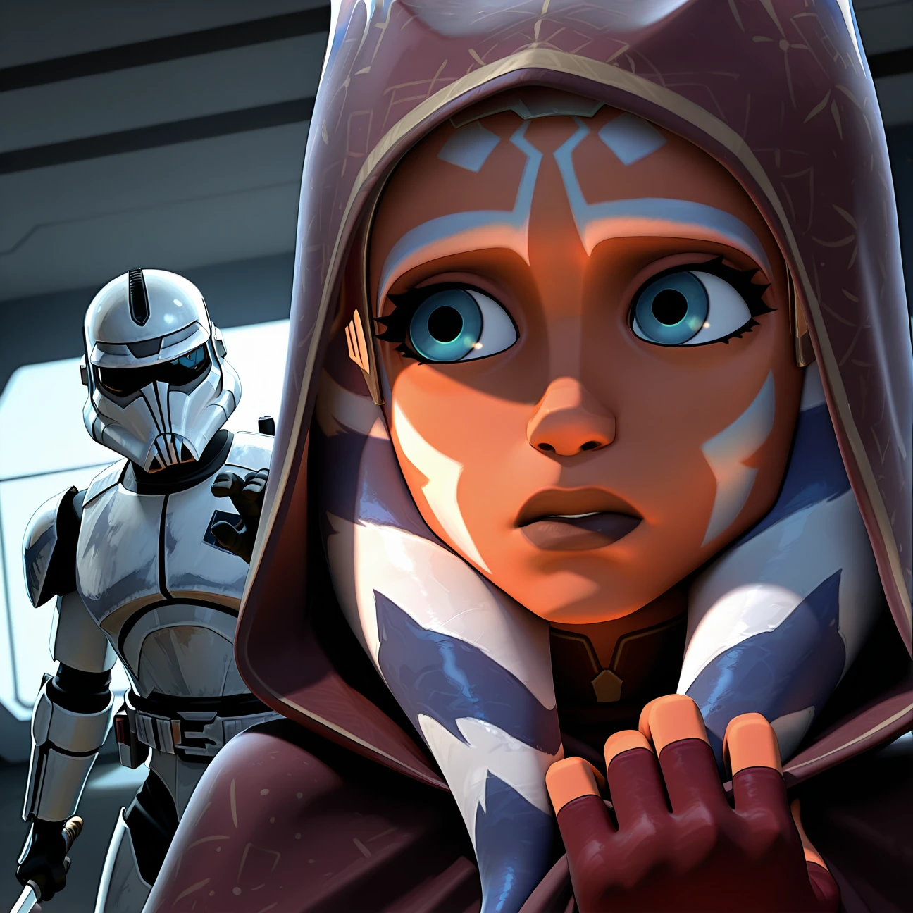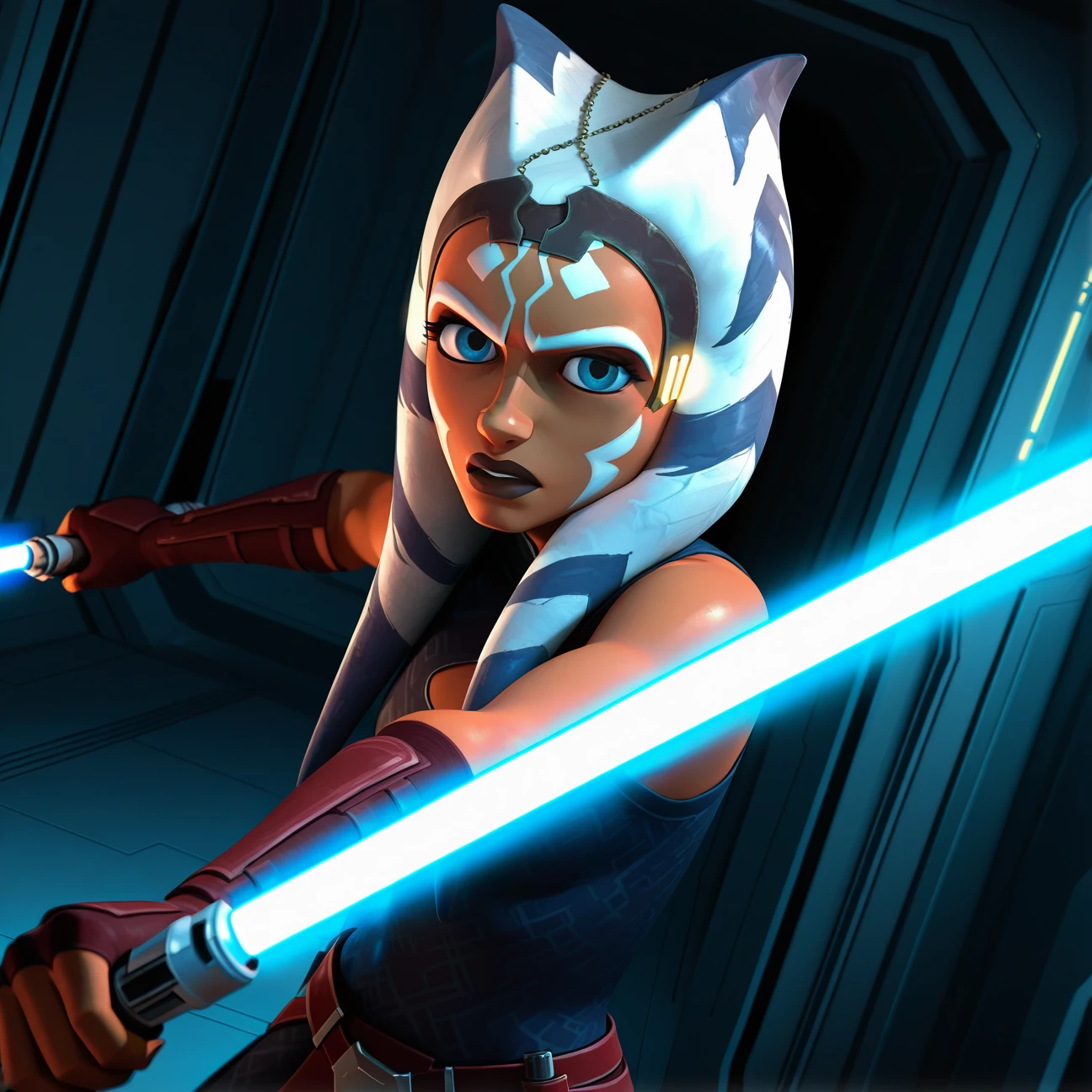 /// aged up, dark blue shirt, bare shoulders, sleeveless, fingerless gloves (for season 7 ahsoka)