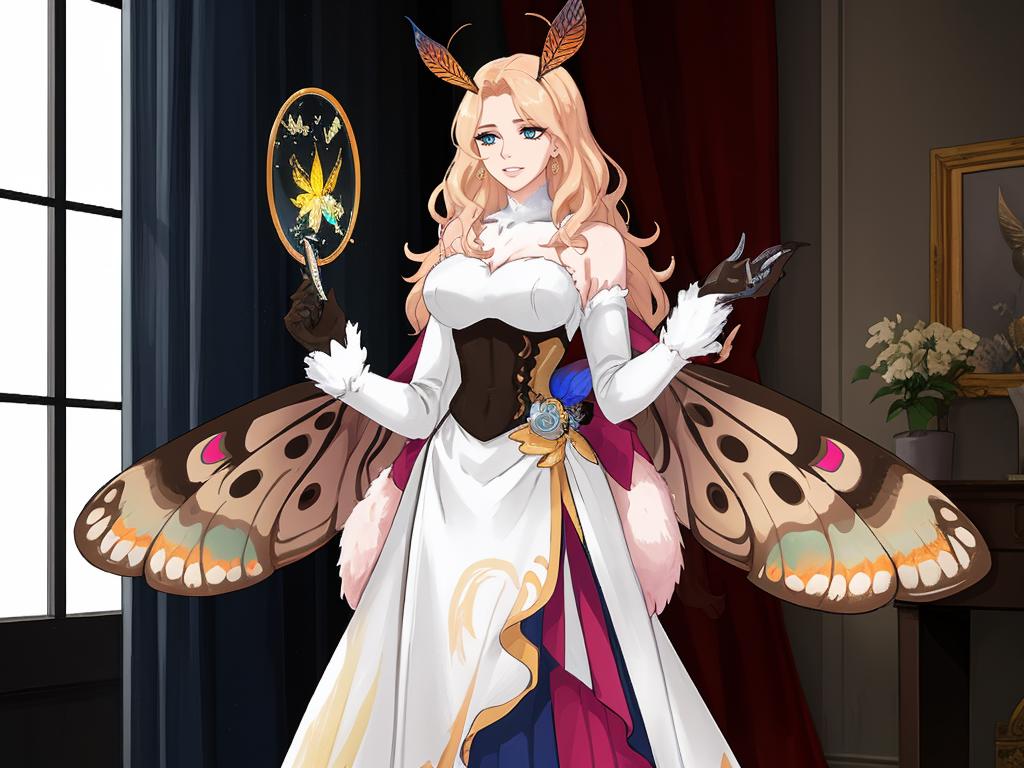 <lora:mothPeoplev120:0.7>(moth woman, insect wings, antennae) or (moth man, insect wings, antennae) with a lower LoRA weight for man!
