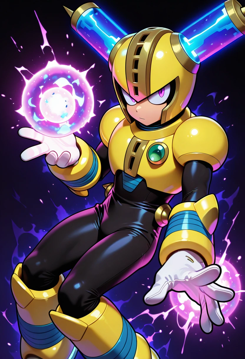 male focus, fuseman, helmet, purple eyes, bodysuit, gloves, white gloves, boots