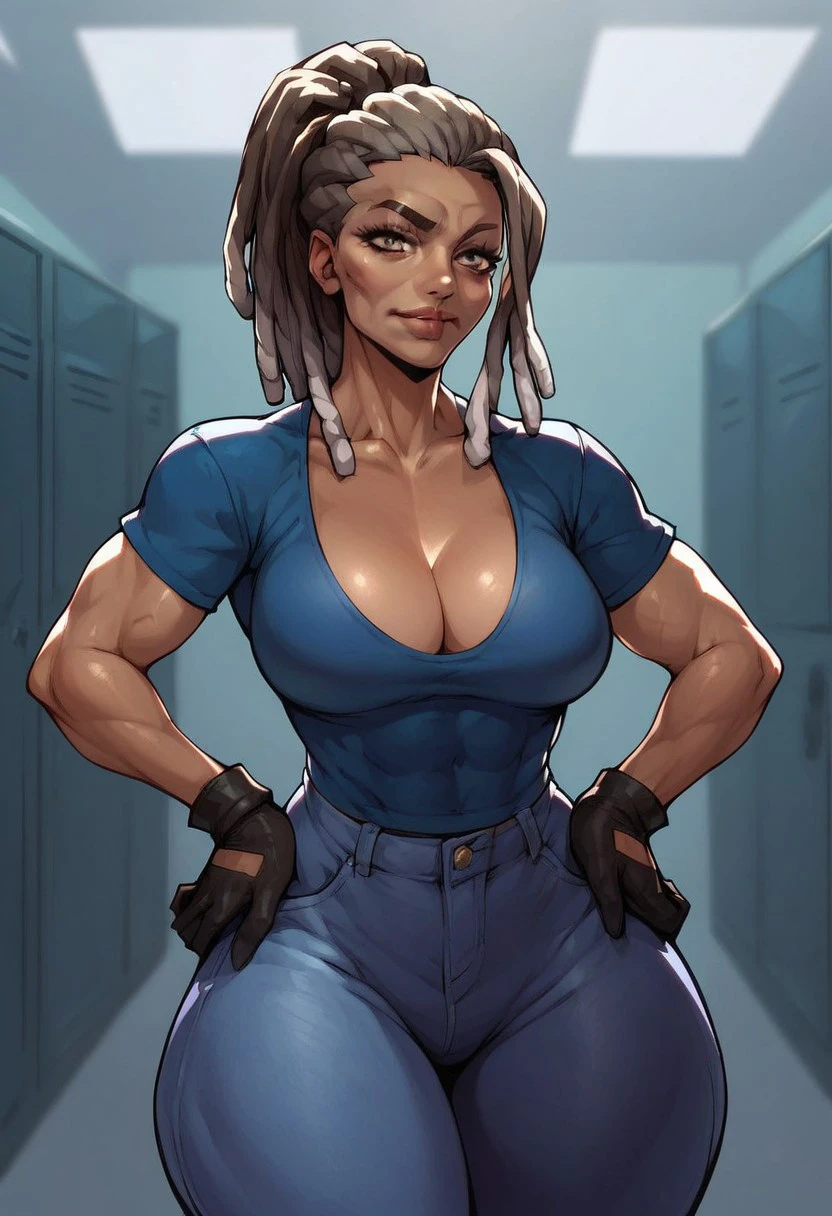 Light brown eyes, dreadlock hair, dreadlock ponytail, tanned skin