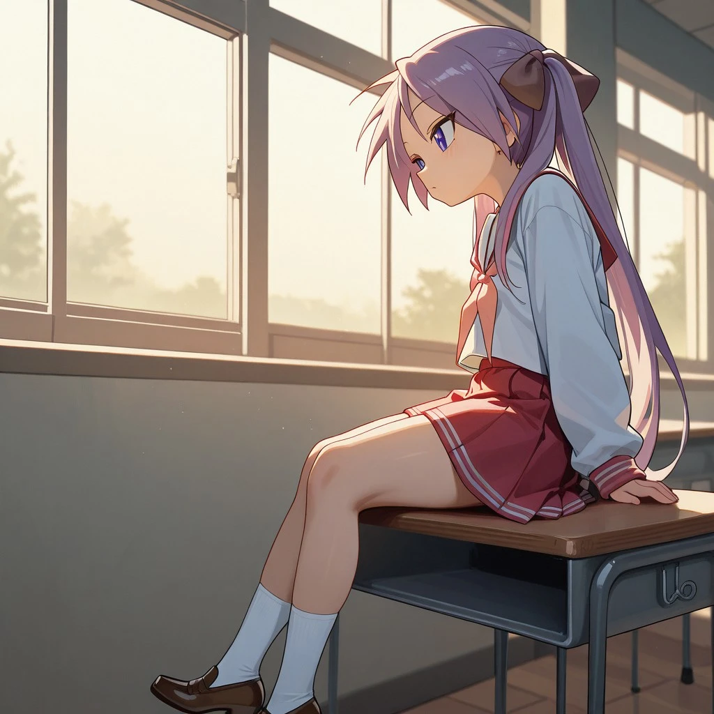 izu_konata_ls, serafuku, red skirt, brown socks, brown shoes
