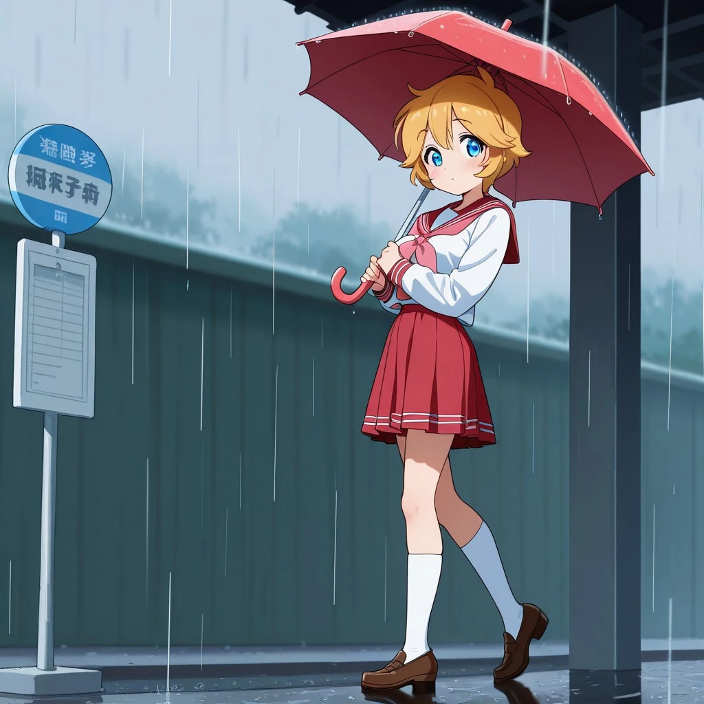kob_yutaka_ls, blue ribbon, twintails, serafuku, red skirt, white socks, brown shoes / blue shoes