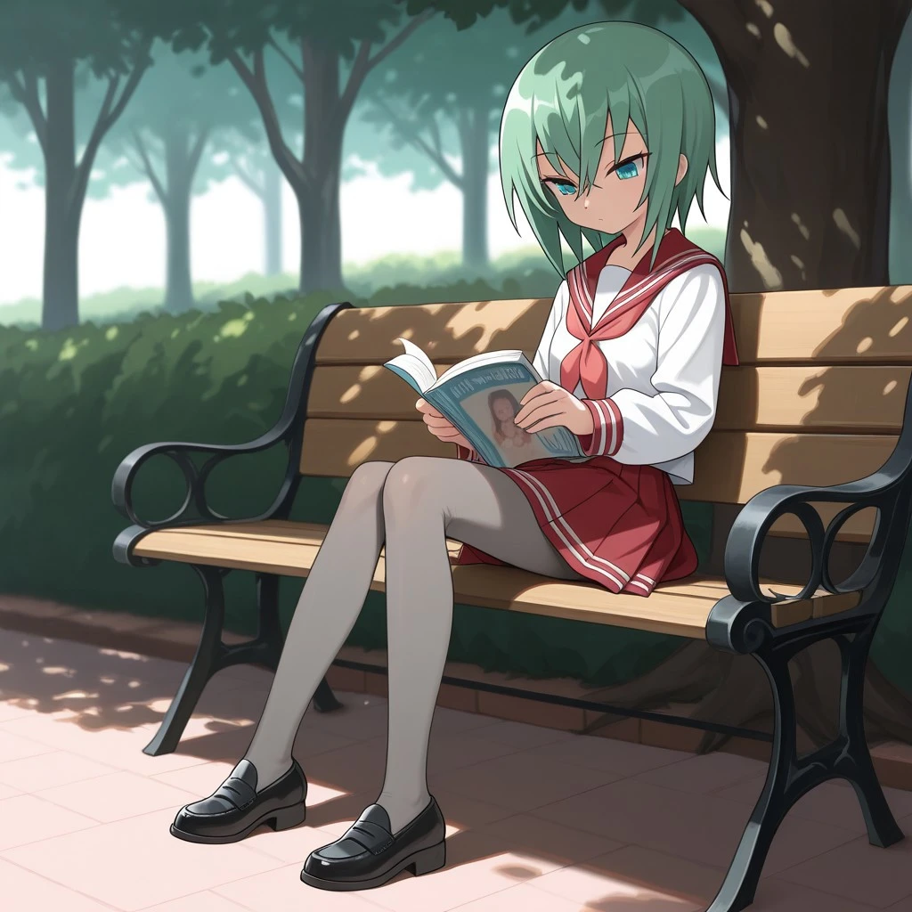 iwa_minami_ls, serafuku, red skirt, grey pantyhose, black shoes