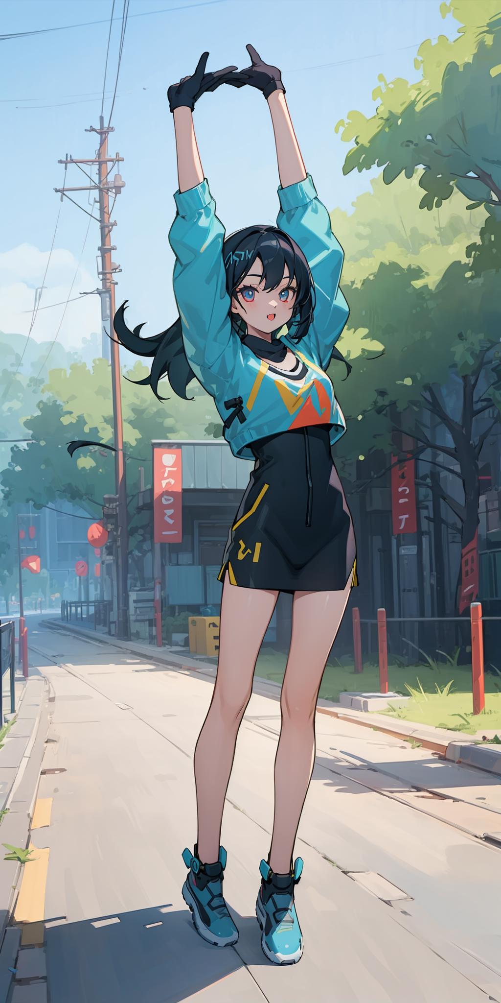 双臂上举拉伸_arms up stretch_両腕挙上延伸|LiblibAI