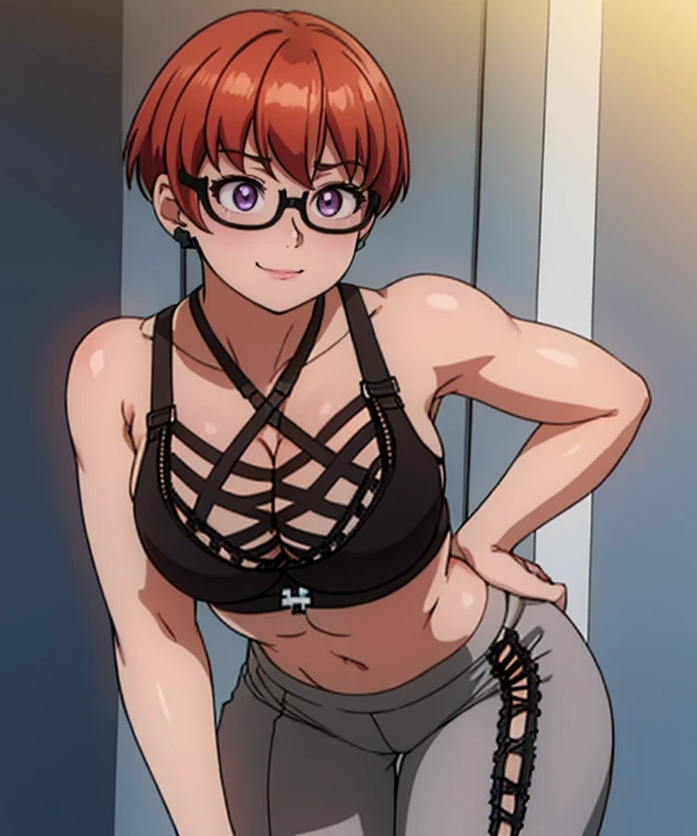 Yoga Outfit: AkihoYogaOutfit, black_cross-laced_sportsbra, multiple_crossed_straps, gray_leggings,
