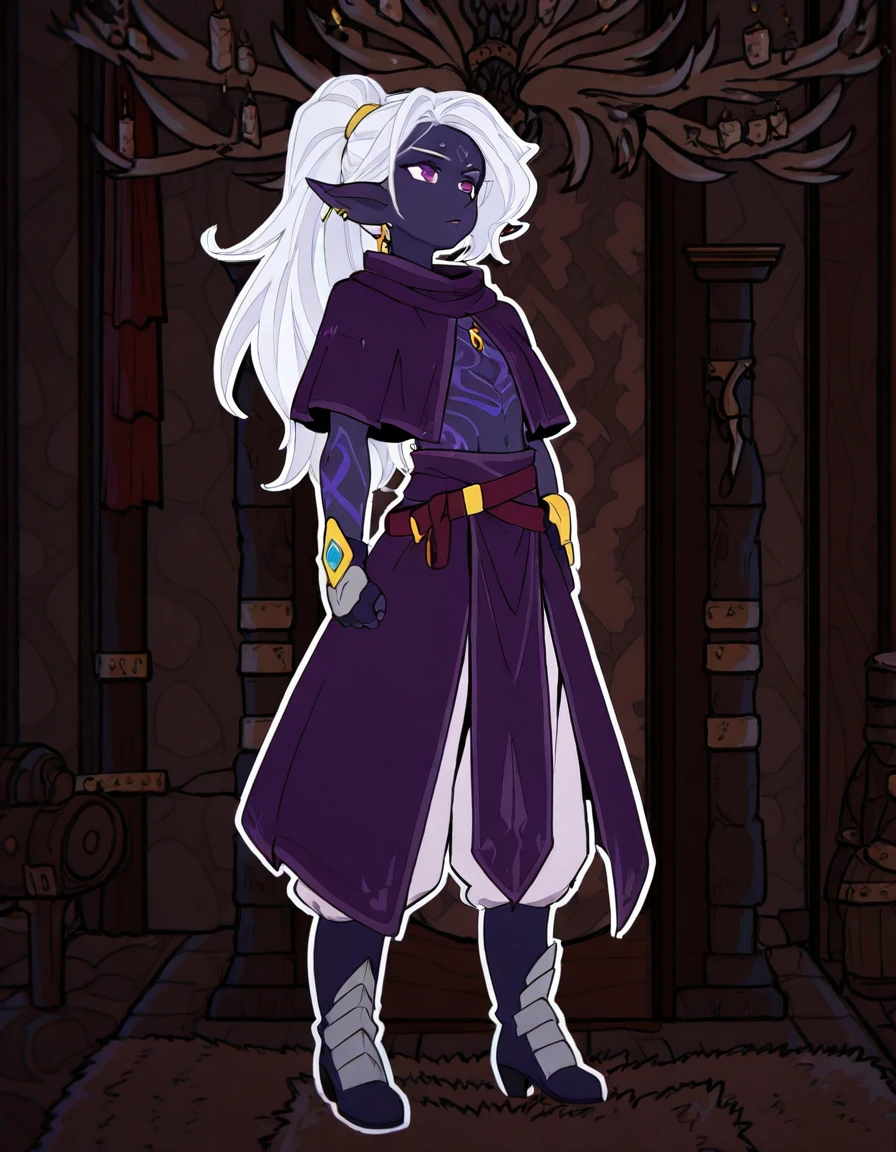 ingachan, black hair, long hair, purple eyes, dark skinned female, hair handkerchief
