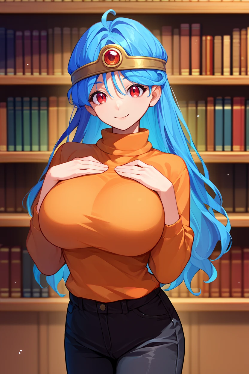 Trigger word is "dq3sage" and "blue hair, red eyes, long hair" is required.