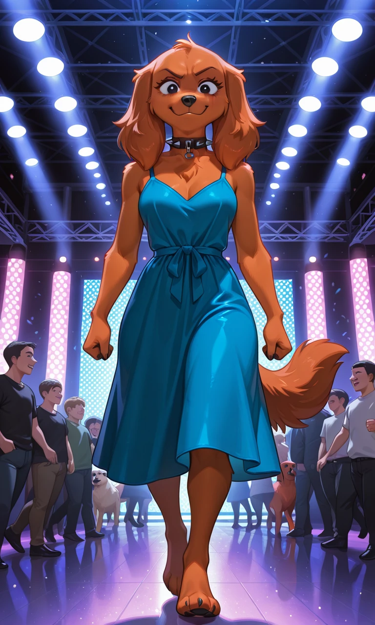 prompts: Cherry_(HB) creature_((\animal\)), dog, Irish setter, red fur, long ears, fluffy tail, black eyes