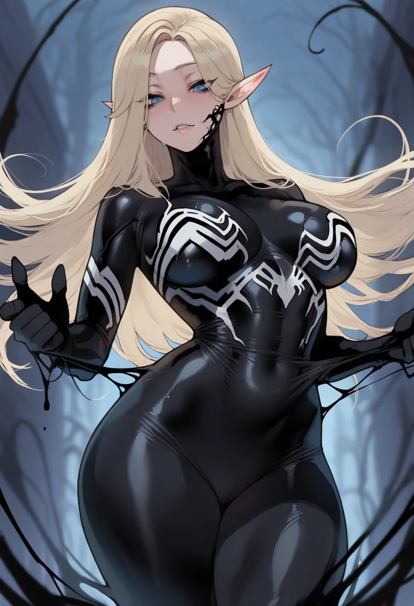 1girl, blonde hair, long hair, elf, blue eyes,pointy ears,