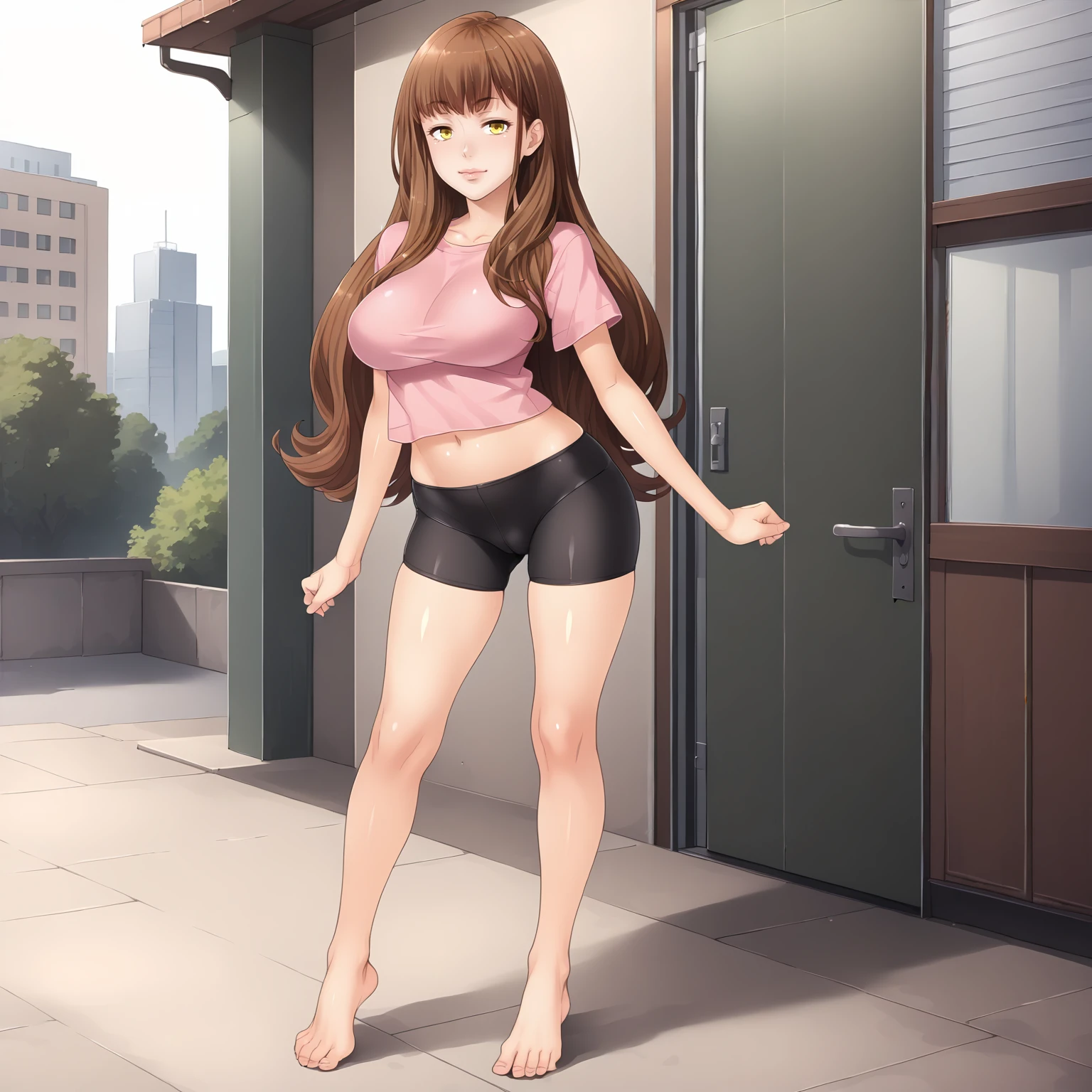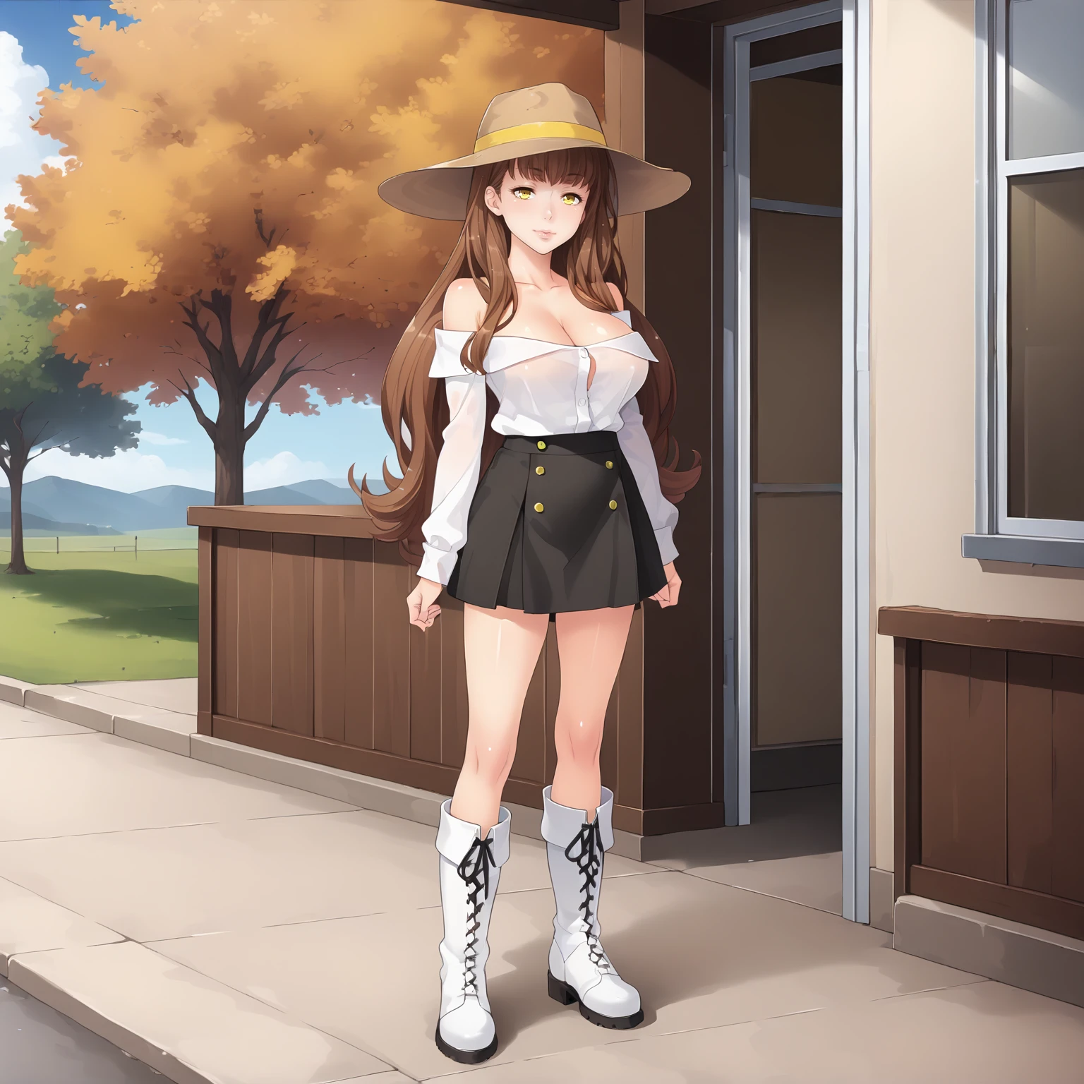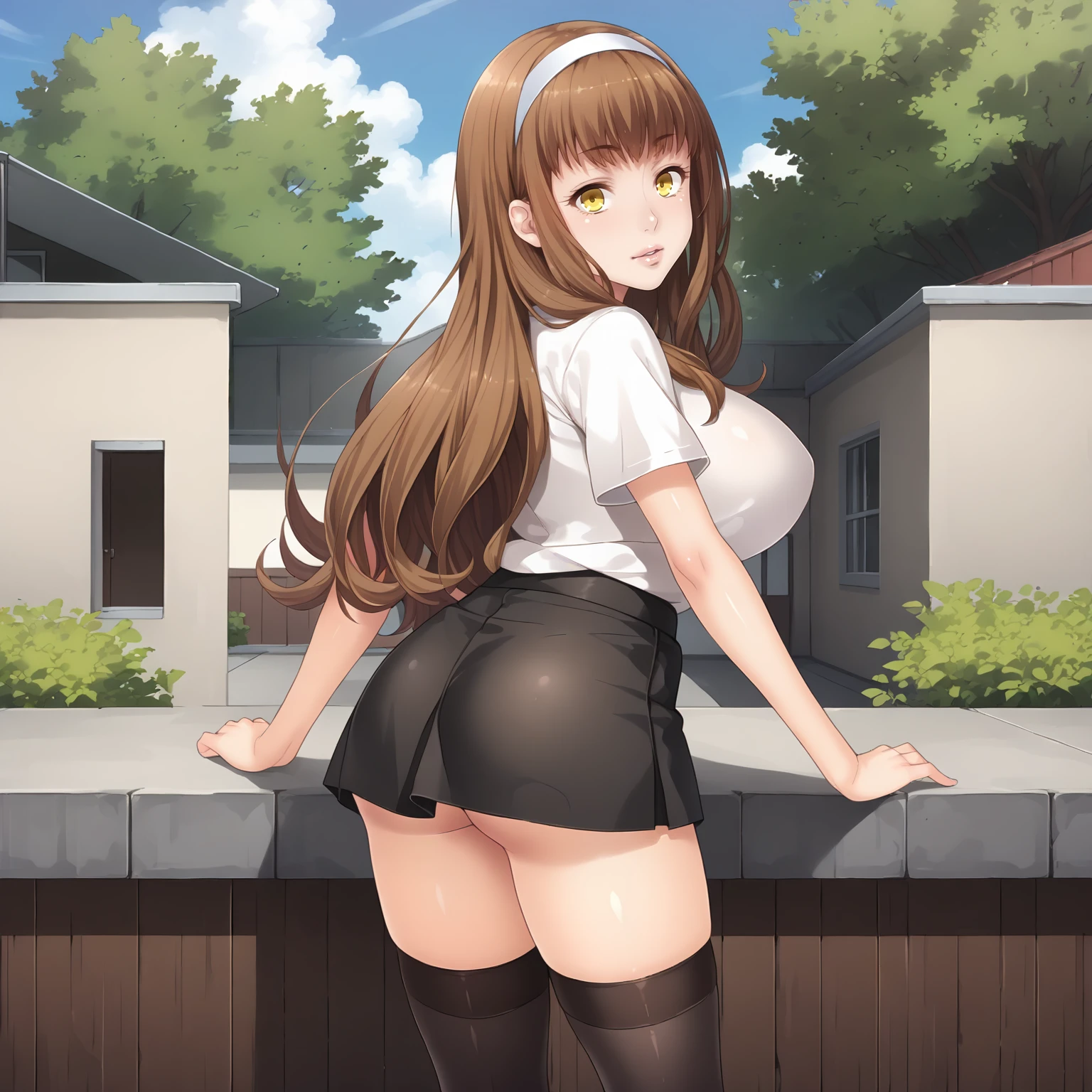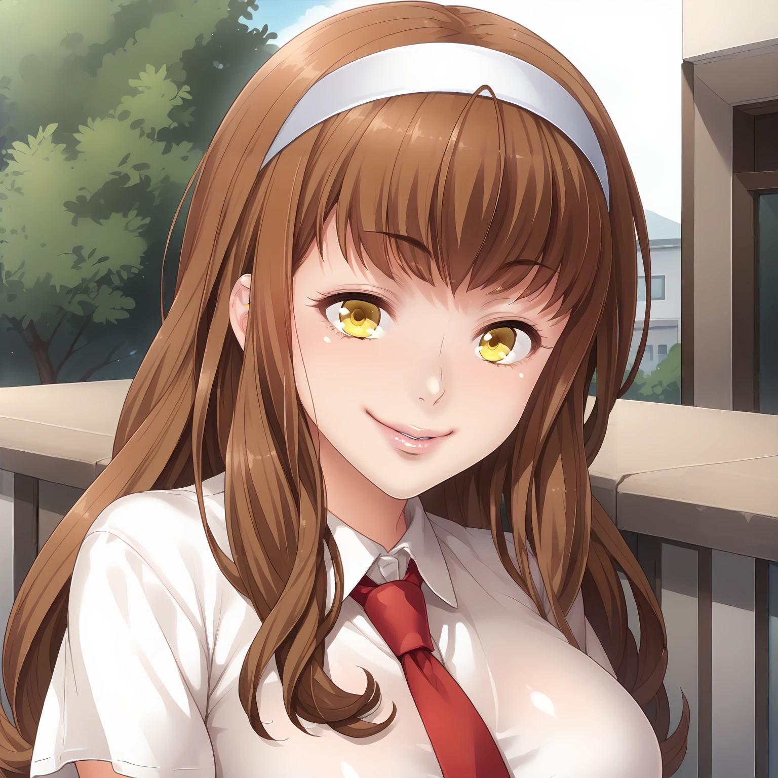 MakiNagase,1girl,brown hair,long hair,yellow eyes,large breasts,