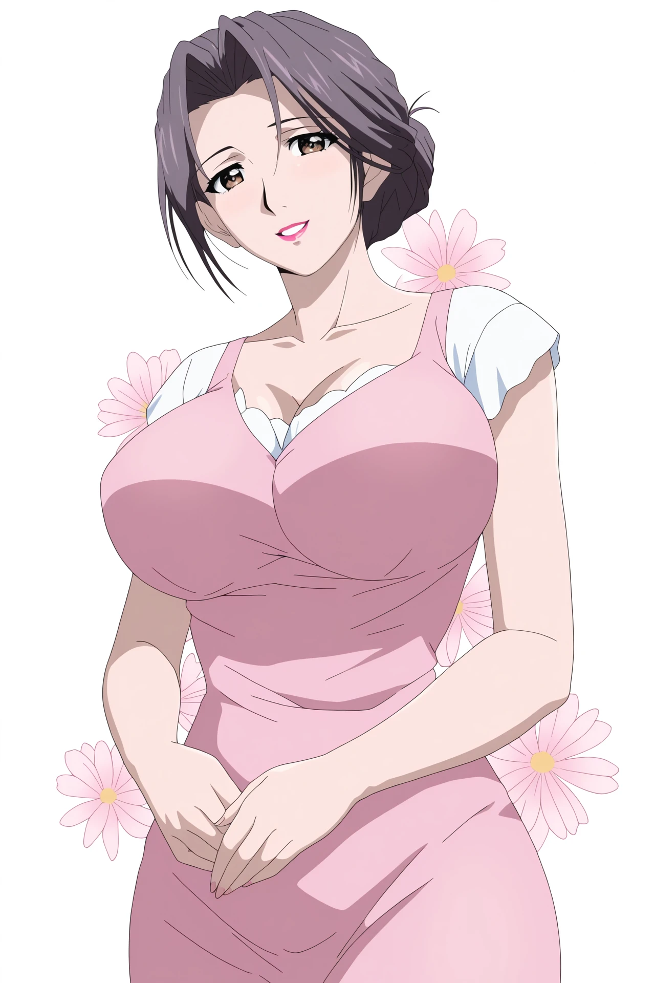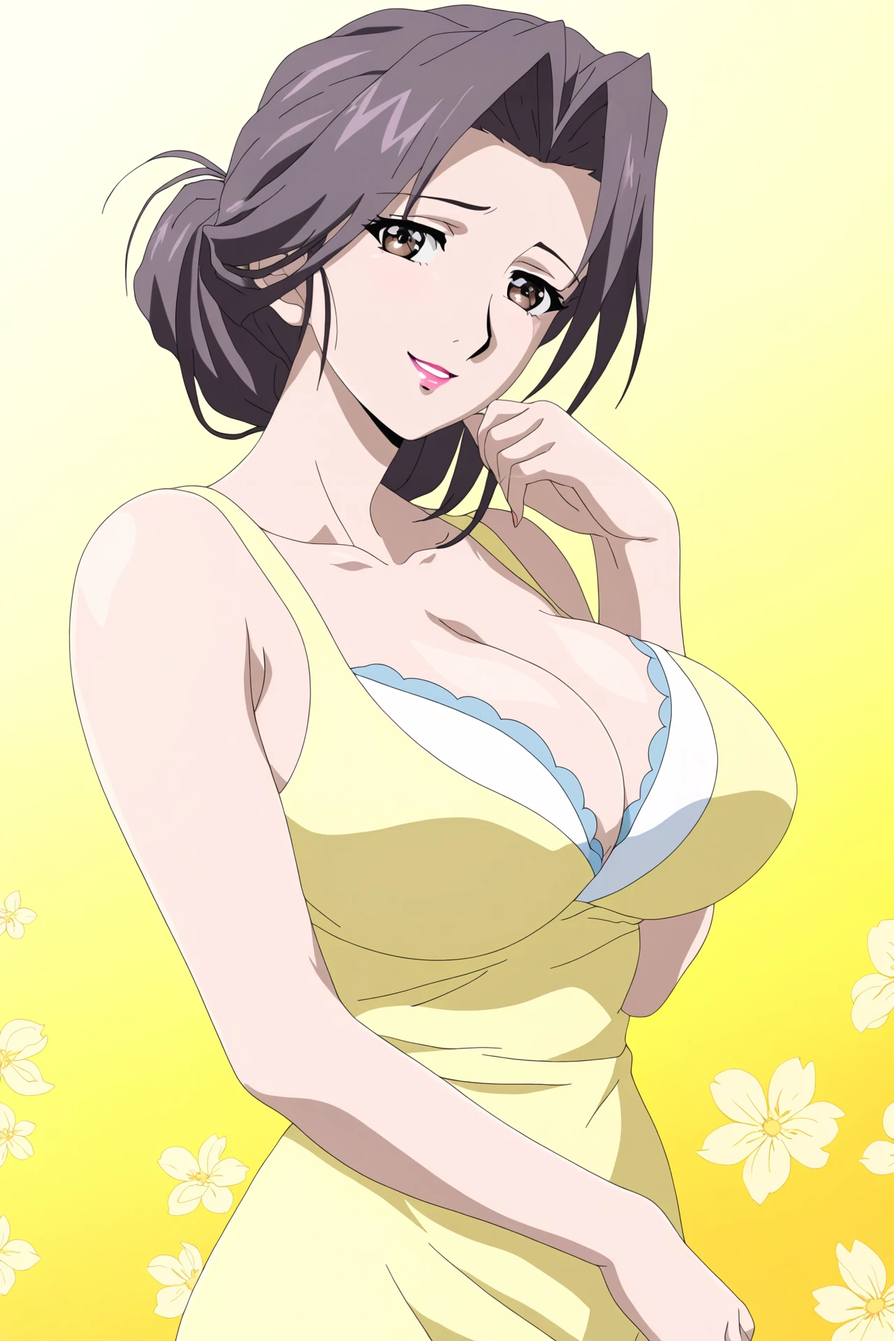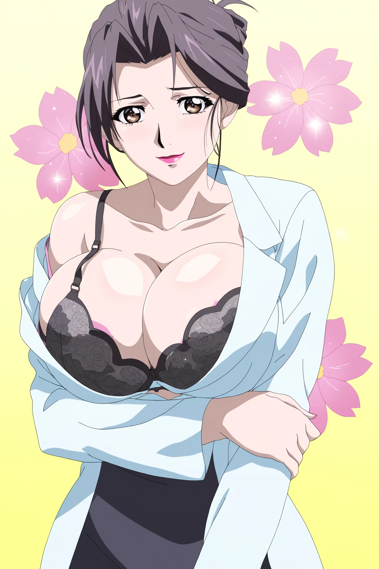 Misako Amamiya,1girl,solo,mature female,black hair,brown eyes,lipstick,makeup,large breasts,
