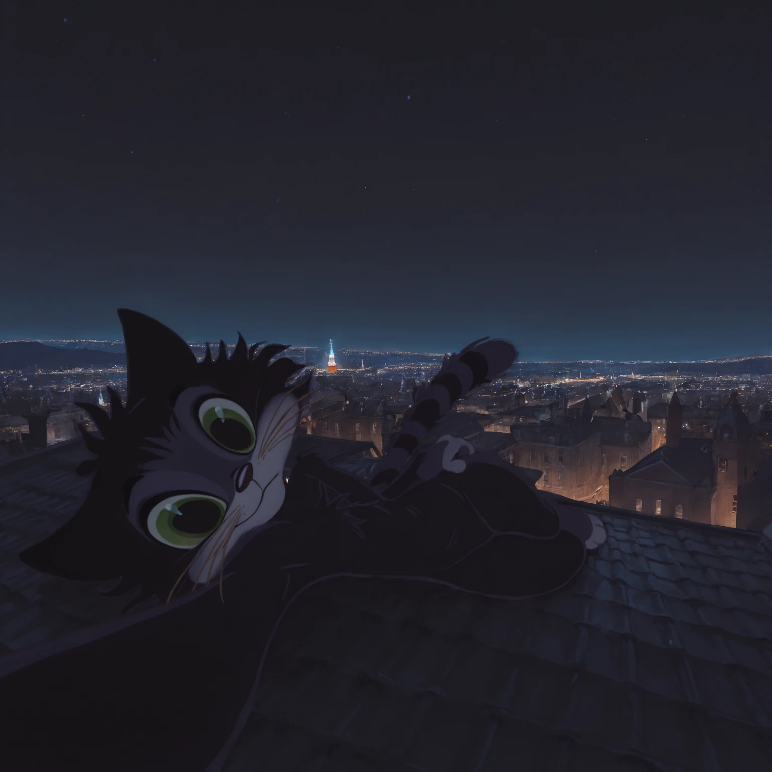 tags: "chuchelomyauchelo, 1boy, male, solo, cat, cat_ears, cat_tail, green_eyes, whiskers, male_cat, furry, black_fur, black chest, black body, black legs"