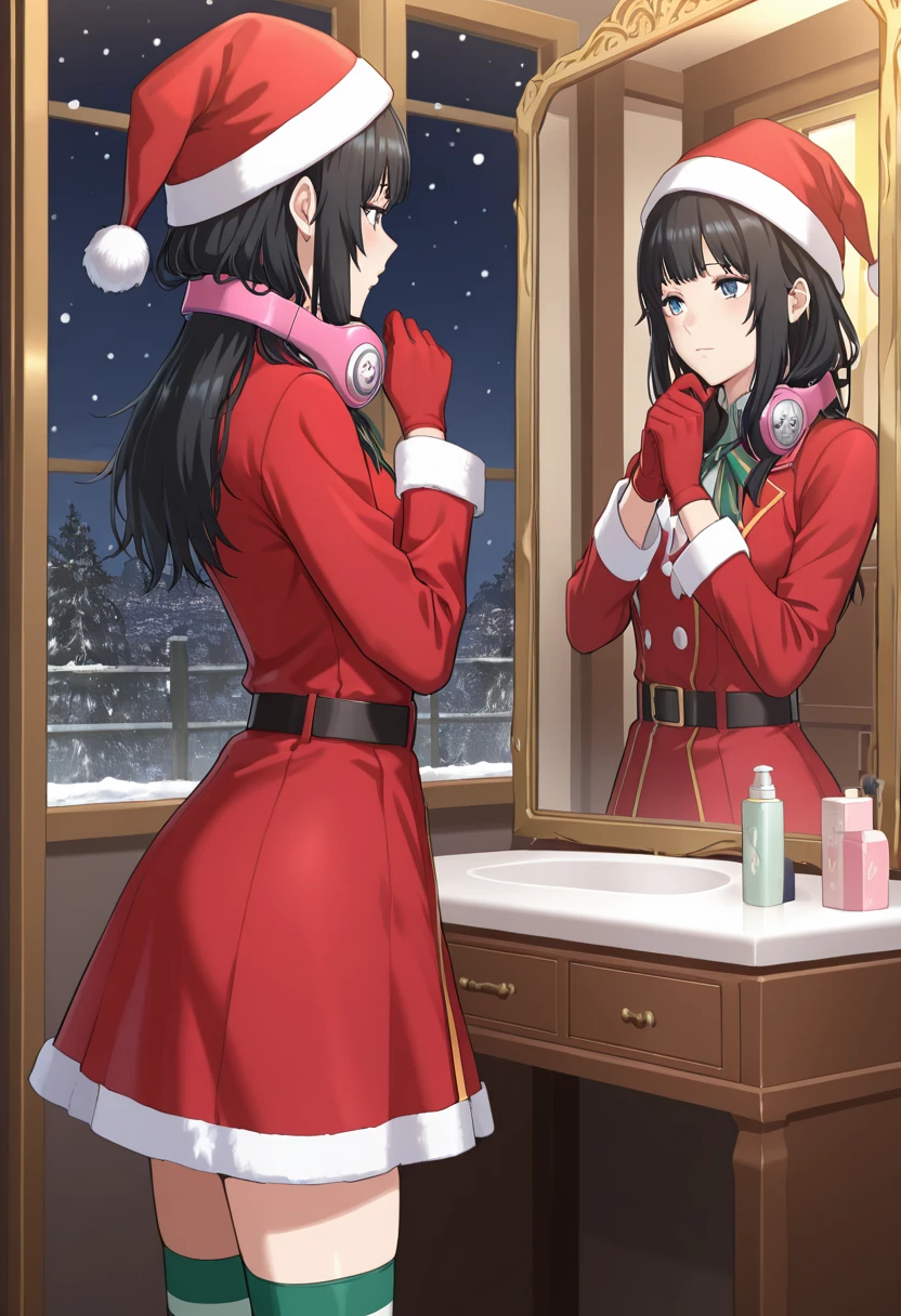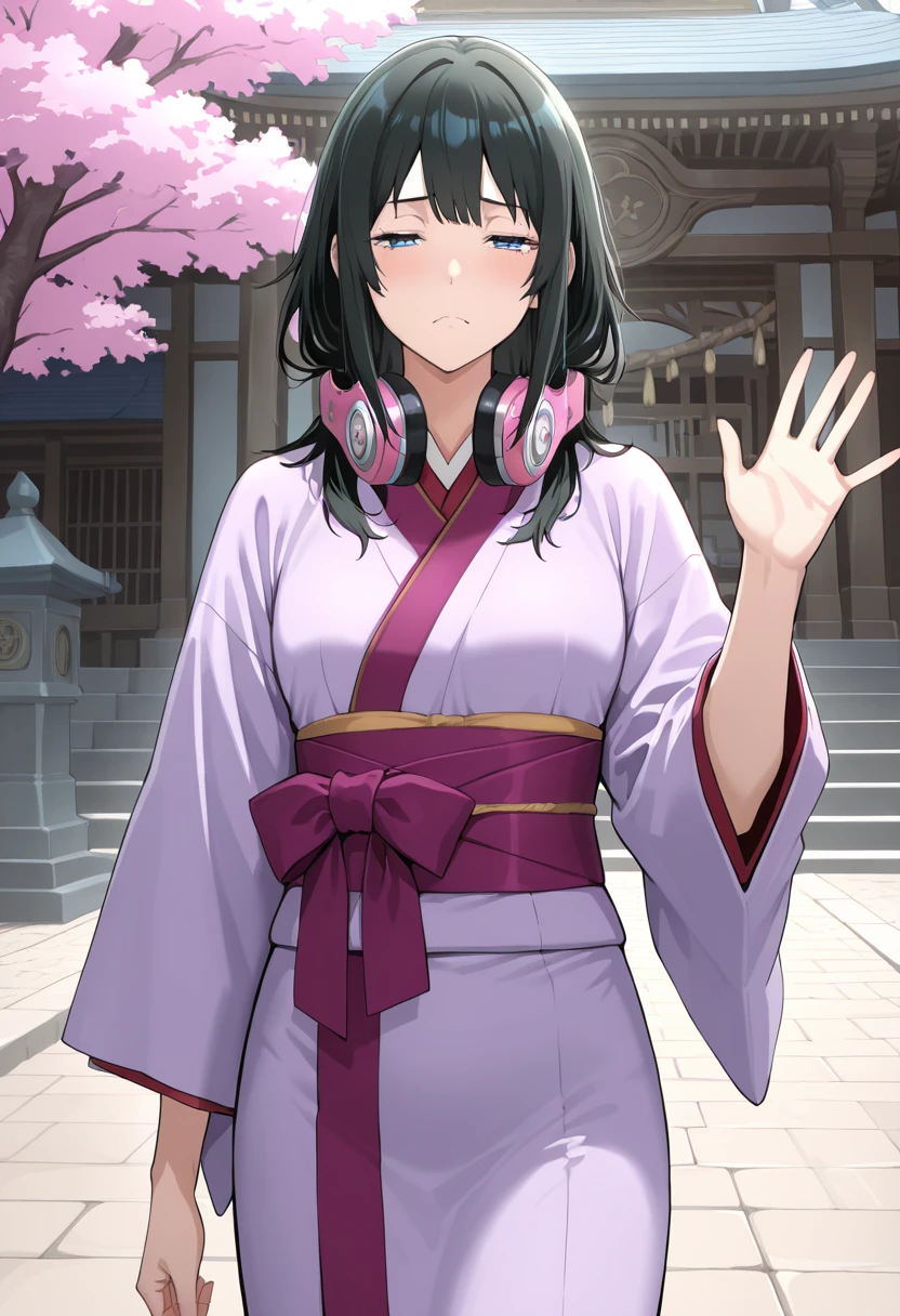 TikiWaifuFE, black hair, long hair, bangs, sidelocks, pink headphones, blue eyes,
