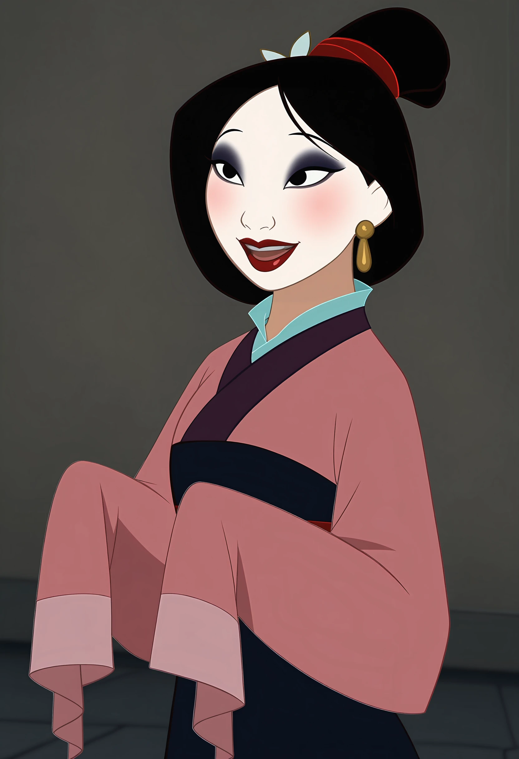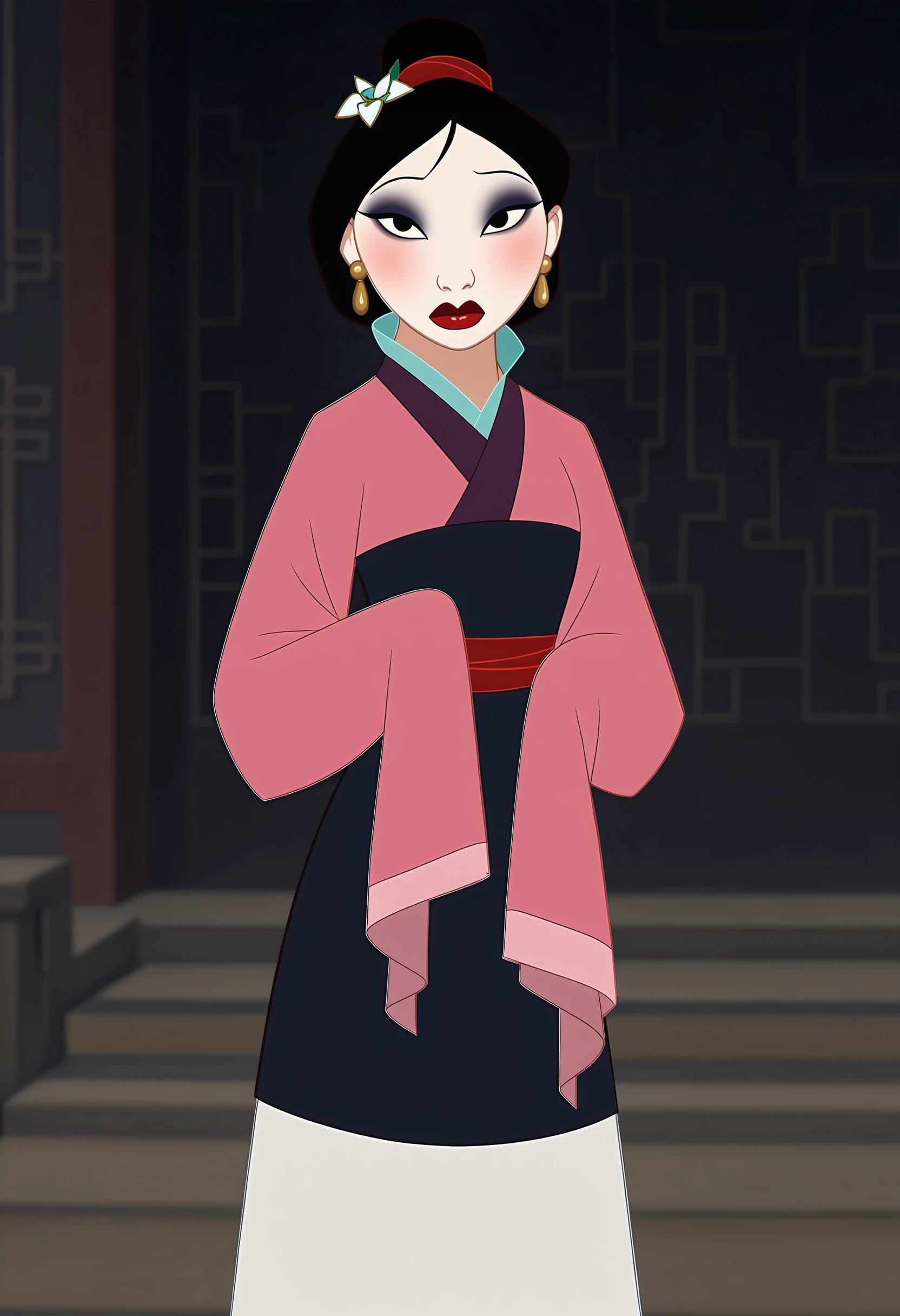 hair bun, makeup, red lips, pink hanfu, hair ornament, sleeves past fingers (OR) sleeves past wrists