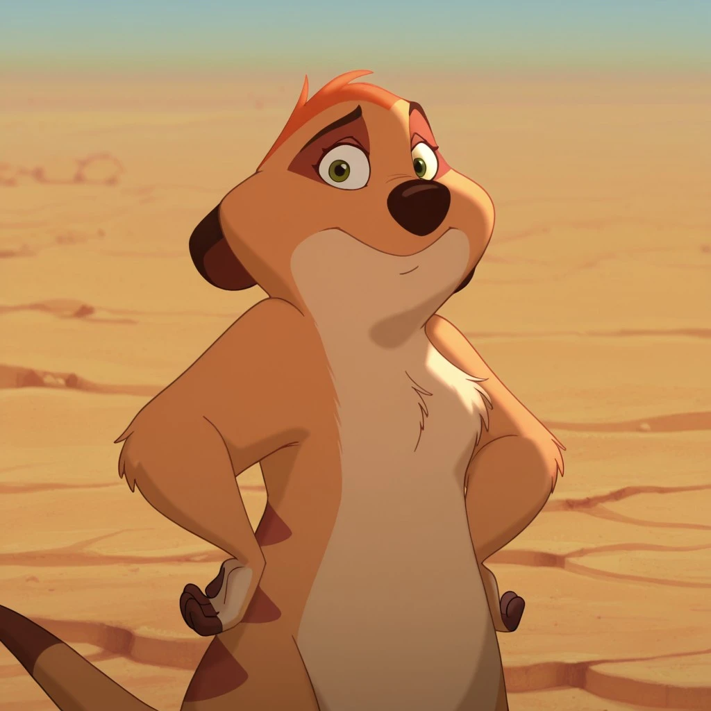 feral, <Timon>, male, meerkatboy, light-brown fur, red hair, black eyes