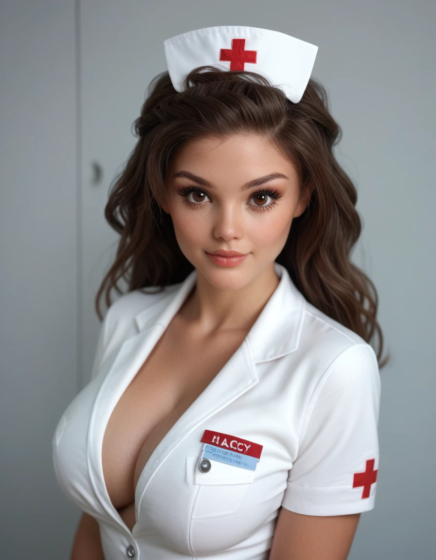 <lora:HolidayIsland_Lacey:0.9>Lacey, brown eyes, brown hair, large breasts, makeup, cute face
