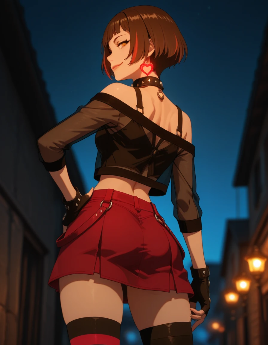 miniskirt, fingerless gloves, choker,asymmetrical legwear,