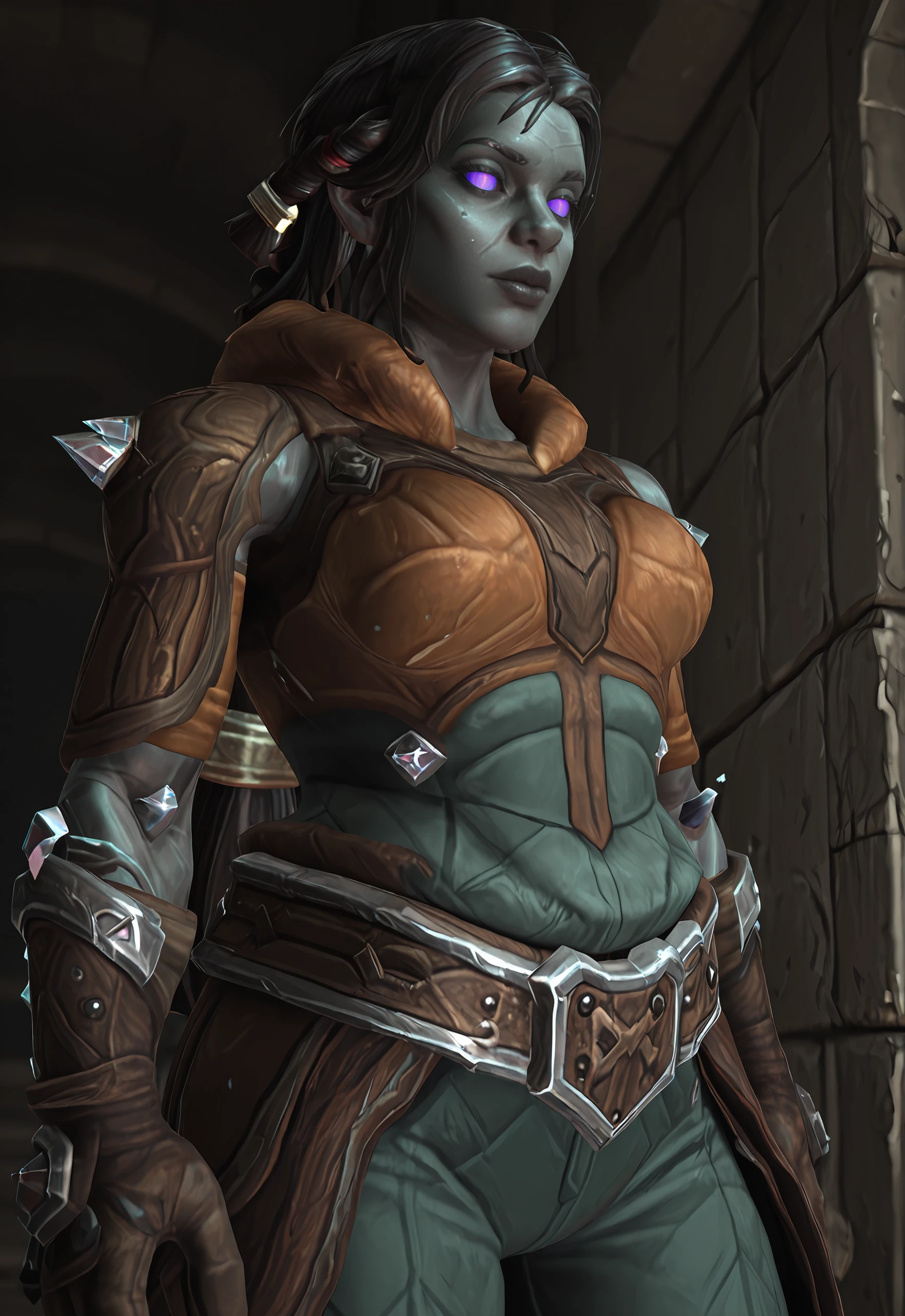 earthenwow, colored skin, structured skin, grey skin, dark grey skin, colored eyes, no pupils, long hair, medium hair, hair ornament