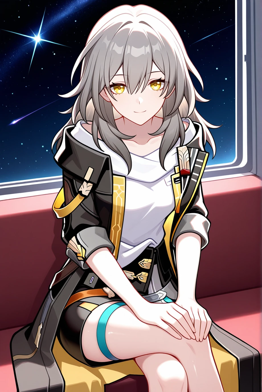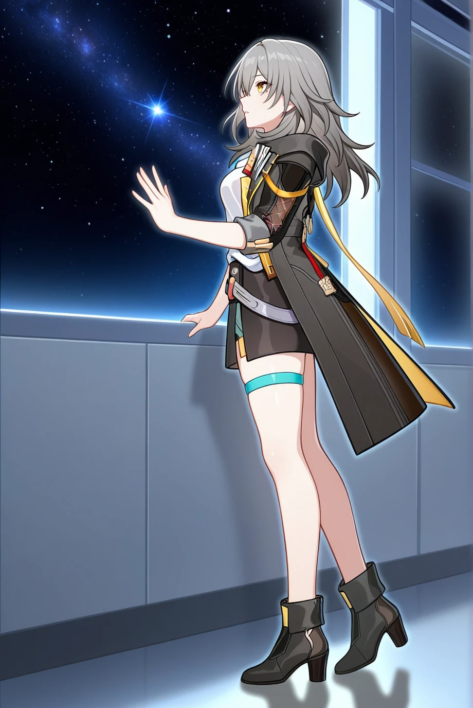 <lora:HonkaiStelle-IL-08:0.9>, ChopioStelle, long hair, grey hair, shiny hair, hair between eyes, yellow eyes, looking at viewer,