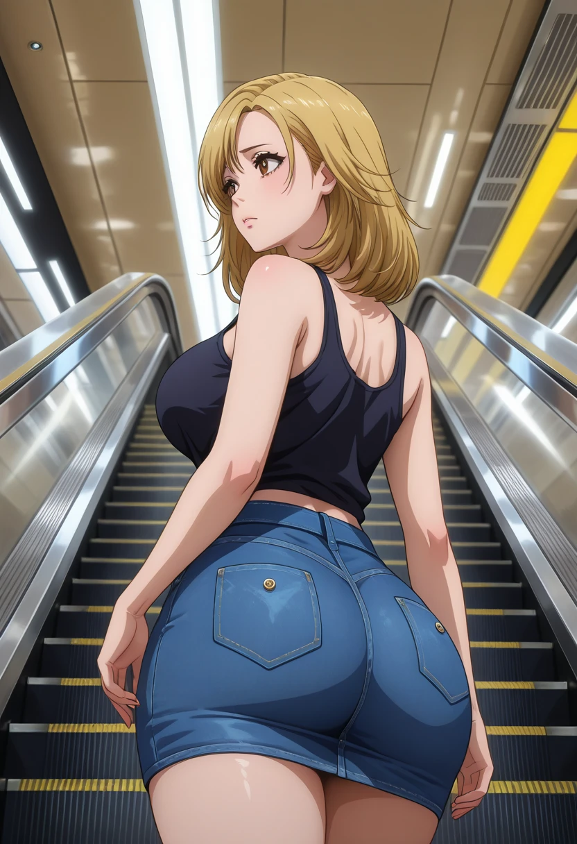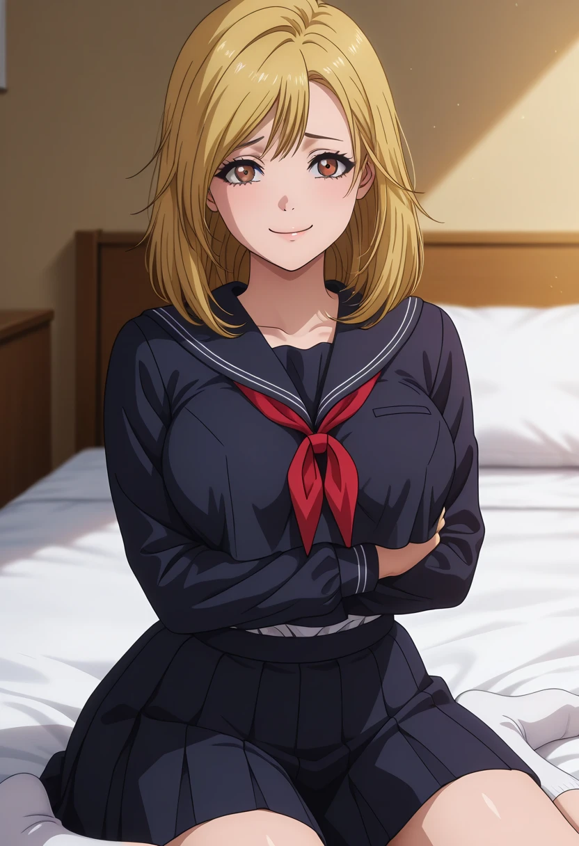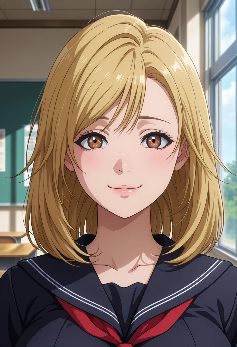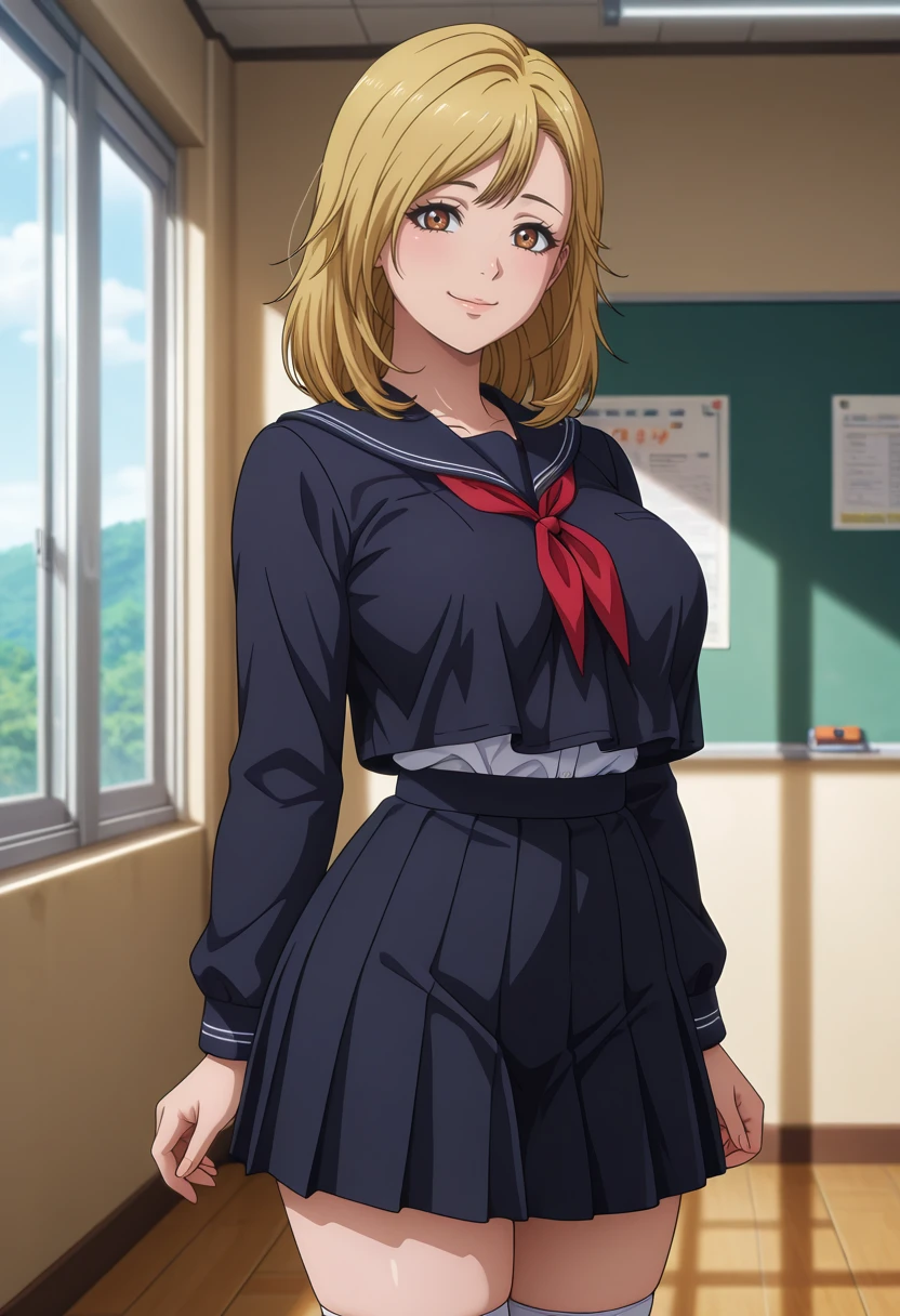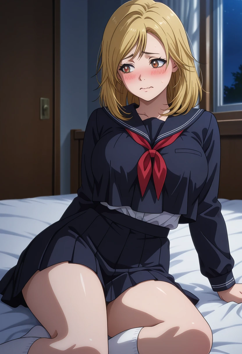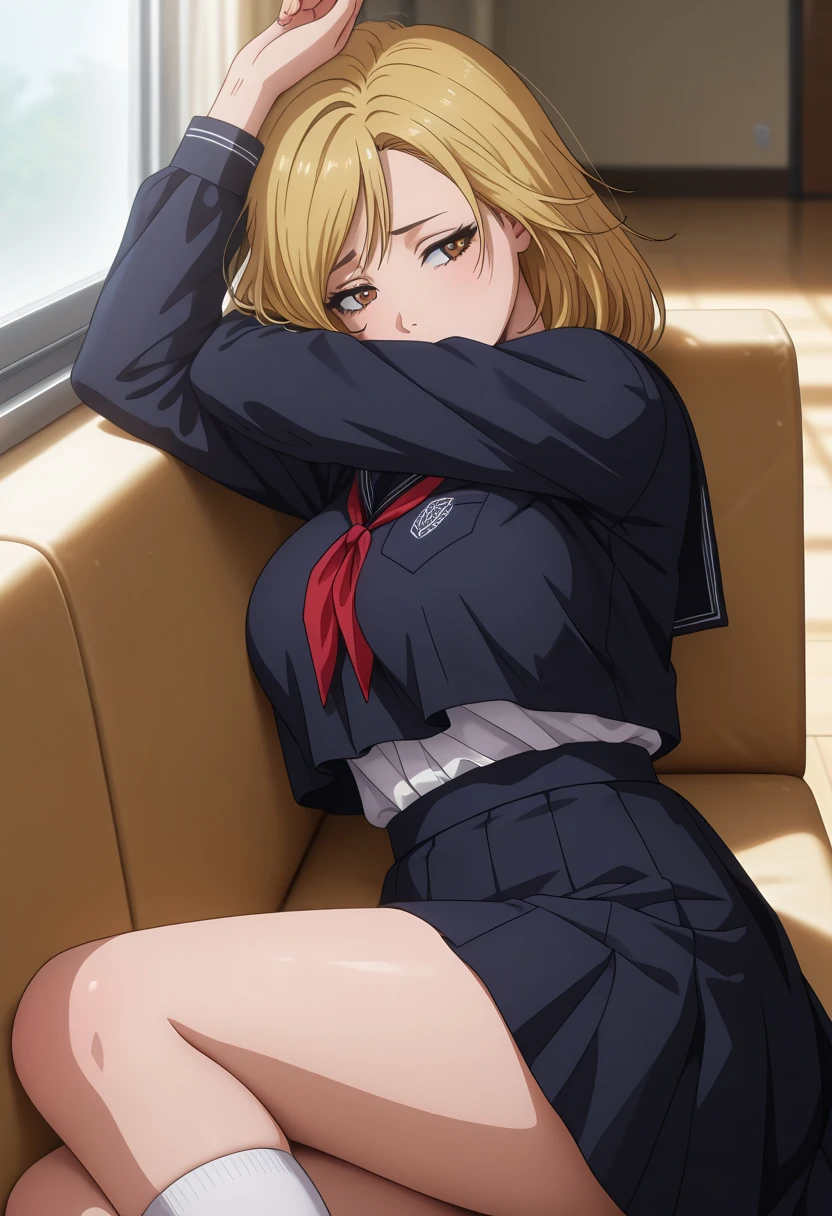 emilyww, brown eyes, blonde hair, medium hair, asymmetrical bangs, large breasts,