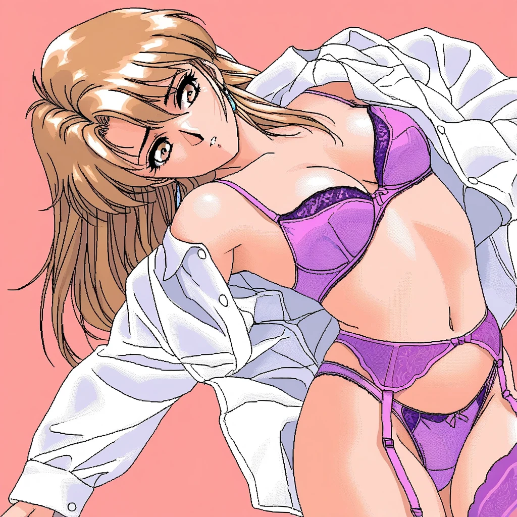 thighhighs,underwear, lingerie, bra, garter belt,shirt, panties, open shirt, open clothes,purple bra