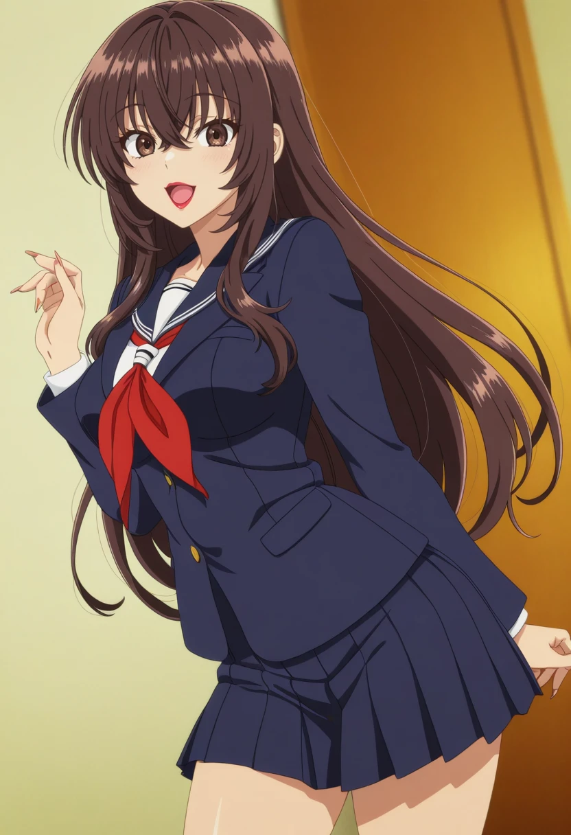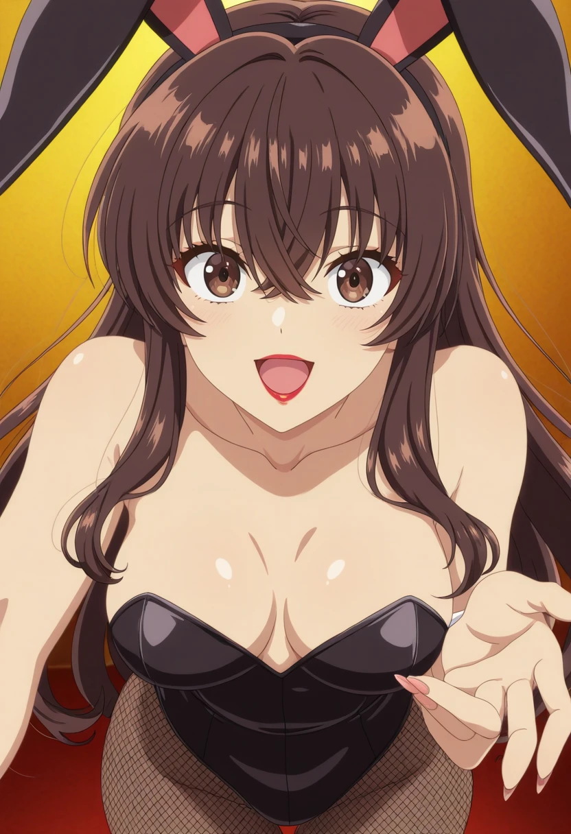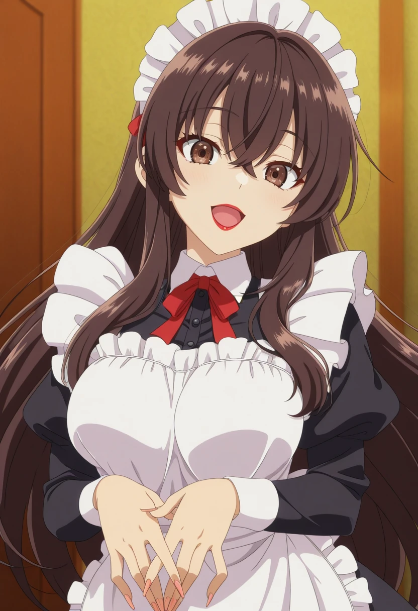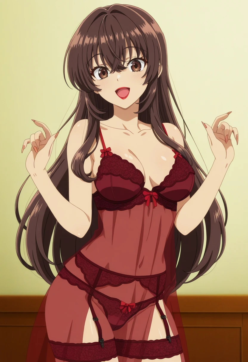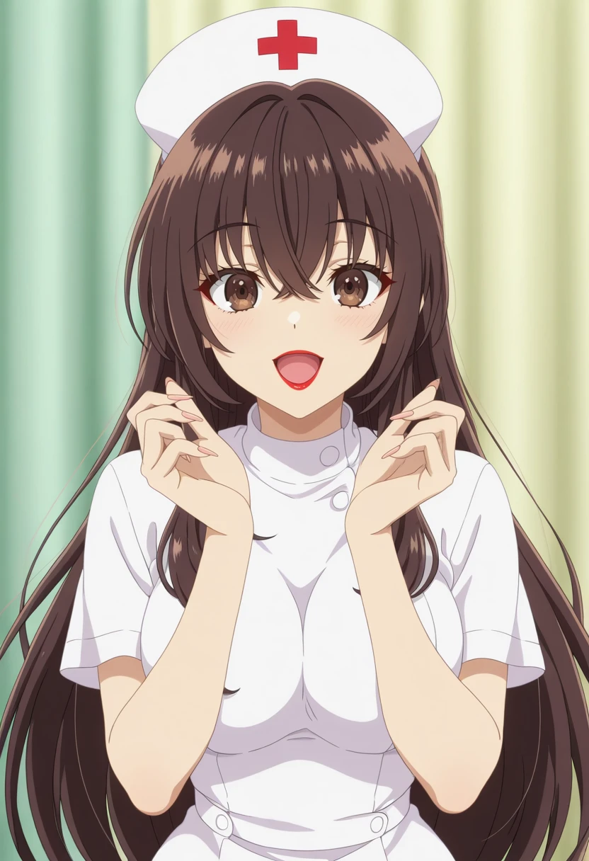 mayu_nekoforge,1girl,brown eyes,brown hair,long hair,sidelocks,hair between eyes, medium breasts,aged up,long fingernails,lipstick